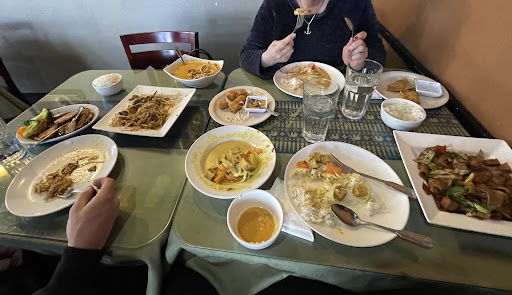 Our entrees: Beef Pad Thai - flavorful but noodles quite over cooked Yellow Curry with tofu- fairly tasty, but not fantastic by any means, especially compared to other yellow curries I’ve had in town. Also the portion was quite smaller than expected Pad Se Ew with tofu - delicious, my favorite dish we were served there! Especially good as leftovers Pumpkin Curry with chicken - tasty enough but again rather mediocre