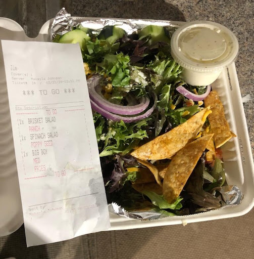Read moreWhen is a Brisket Salad not a Brisket Salad? When the Brisket is missing. We placed a to-go order on 02/22. A photo is attached. We live around 50 miles away from Minden. Imagine my disappointment when I opened the Brisket Salad to not find any Brisket was inside. I thought maybe the Brisket was on the bottom. No.