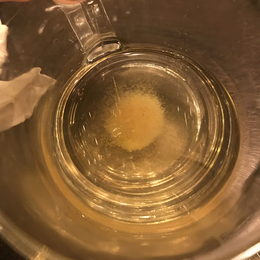 First, the tea. When we came a month ago, the tea was the best that we had EVER had in ANY sushi restaurant! It was a green tea made from actual tea leaves. It was so good, one of my guests asked the server for the distributor's name so she could order the tea herself to drink at home! This time, however, the tea tasted like water. Very thin. Hardly any taste. Very poor quality. And you could see a "powder" at the bottom of the glass, which indicated to us that tea bags were used — a much cheaper alternative to tea leaves. Picture below.