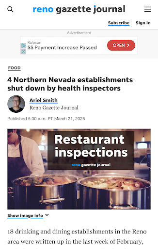 dining establishments in the Reno area were written up in the last week of February, including four that were temporarily closed.
