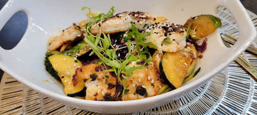 The shrimp were Overcooked and tough,you can see in the photo they are cooked into tight little circles, instead of a C shape. The carrots were almost raw. There were zucchini noodles, And inexplicably more zucchini slices getting mushy in the bottom of the bowl that they fill with broth. It was just one note of flavor- Tapatio. I'd rather have Chic-fil-A sauce, it has a better flavor profile.