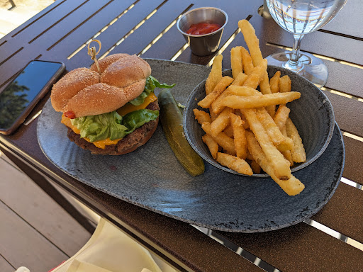 I went here a few days ago and got a chicken Caesar salad. I asked for no anchovies. I got anchovies, rock hard chicken and the inside of the chicken had pink parts. My friend ordered a medium rare burger and it was hard on the outside and dripping with blood on the inside. We think the grill must have been too hot if the exterior of the items were overcooked and the inside was undercooked. I was just really disappointed in general. Our waiter, he was wonderful, but it also took minutes for the server to acknowledge us and seat us. For the price and location, there needs to be better quality control on this all. I mean it’s a patio bar. We got a salad and a burger. Shouldn’t have turned out the way it did and we are both locals, who want to support local economy…but idk. Very...