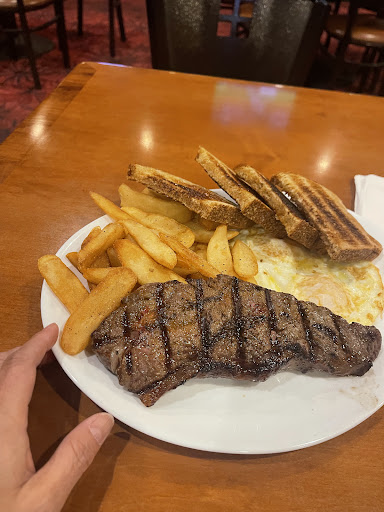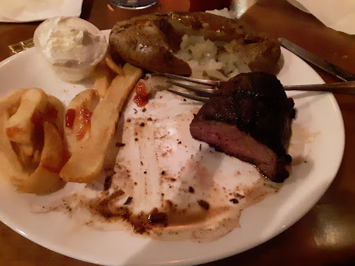 It's one of the few places you can still have a decent sirloin steak with baked potato and salad for a price that won't break the bank too. Just resign yourself to getting the steak either super well done or bloody blue raw.