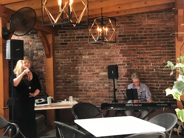 Carly Johnson, vocalist, and her fellow keyboard artist, playing jazz and bossanova on the patio Sunday...