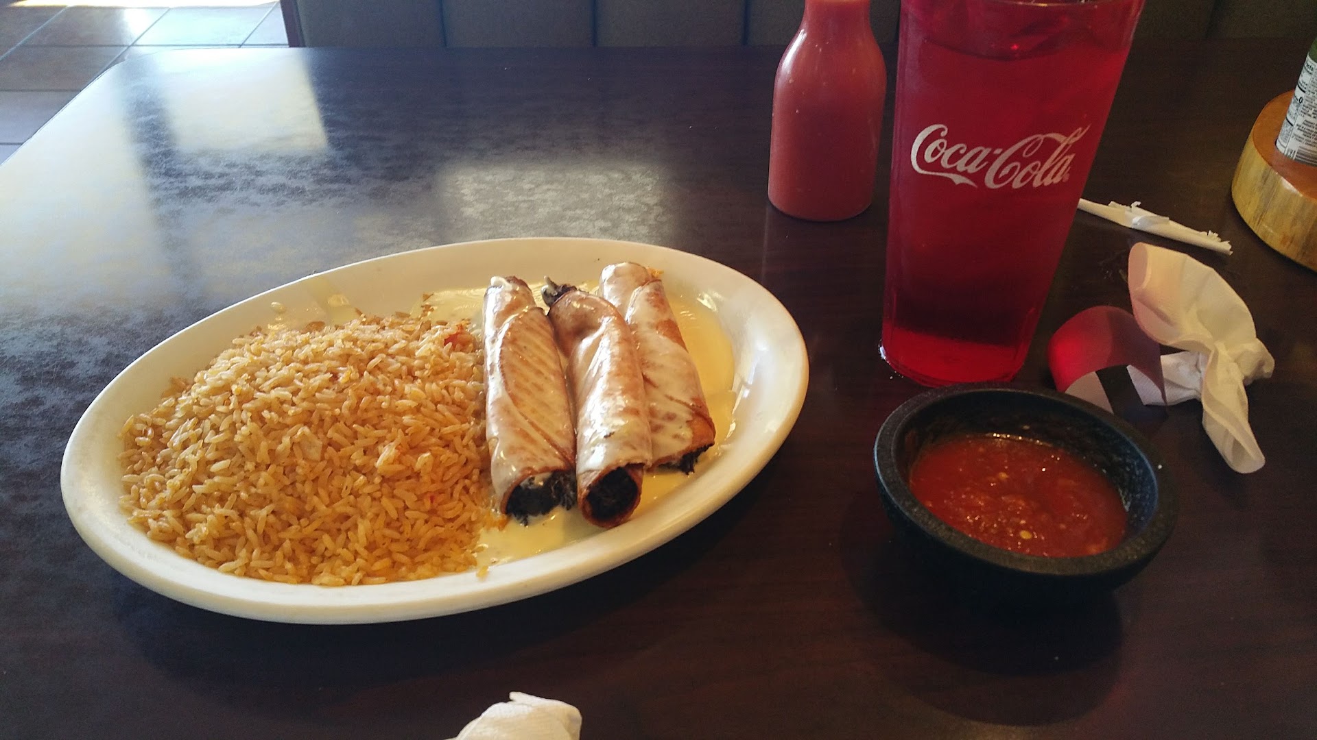 Read moreIf I could give this restaurant negative stars, I would! I ordered carryout and went to pick it up. As the worker charged me $56.00, I asked to see a menu. The price of the Pollo Nortena was much less than the $24.09 they charged me. He went to get a guy whom I assume, was the manager. He proceeded to tell me that I ordered the steak nortena! I didn't even know it also came in steak. I told him the order was wrong and my bill was incorrect. He proceeded to argue with me and he knew I ordered steak and not chicken!! What kind of manager does not try to fix issues like this?? He offered NO resolution at all!! I will NEVER be back and I used to eat there or get Carryout at least once a week. Now, they have lost me as a customer for what they did! Also, when I brought it home, the steak was black, dry, and overcooked. Funny thing is, if I ordered it then why did they not ask me how I I wanted it cooked?? They also did nit include any salsa. That is why I will NEVER be back! Shame on...