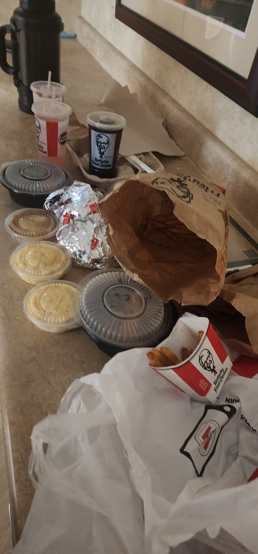 Read moreI have had my oil changed in half as much time as I spent in this KFC drive thru. This is not the first time I have experienced this ridiculous wait time here. There weren't even many cars ahead of me (5 when I arrived). Luckily the chicken tasted as it usually does, but it was not worth the 50-minute wait for "fast food". Our "large" side of mashed potatoes was only half filled. Do not expect to receive any dipping sauces either. They also no longer serve baked beans or allow you to split your family bucket between chicken and tenders. They do not comp with anything, whether it be extra food, kindness, or a dessert. I only try this place every 6 months or so, thinking surely the employee structure has changed since my last visit, but the experience is always the same and always regrettable. Do not recommend this KFC location to anyone who is hungry and does not wish to spend their evening suffering a lengthy amount of dread, frustration, anger, etc. awaiting food. Stay home and cook if this is your only option, as you will certainly have your food cooked and consumed in less than the amount of time you would have waited in...