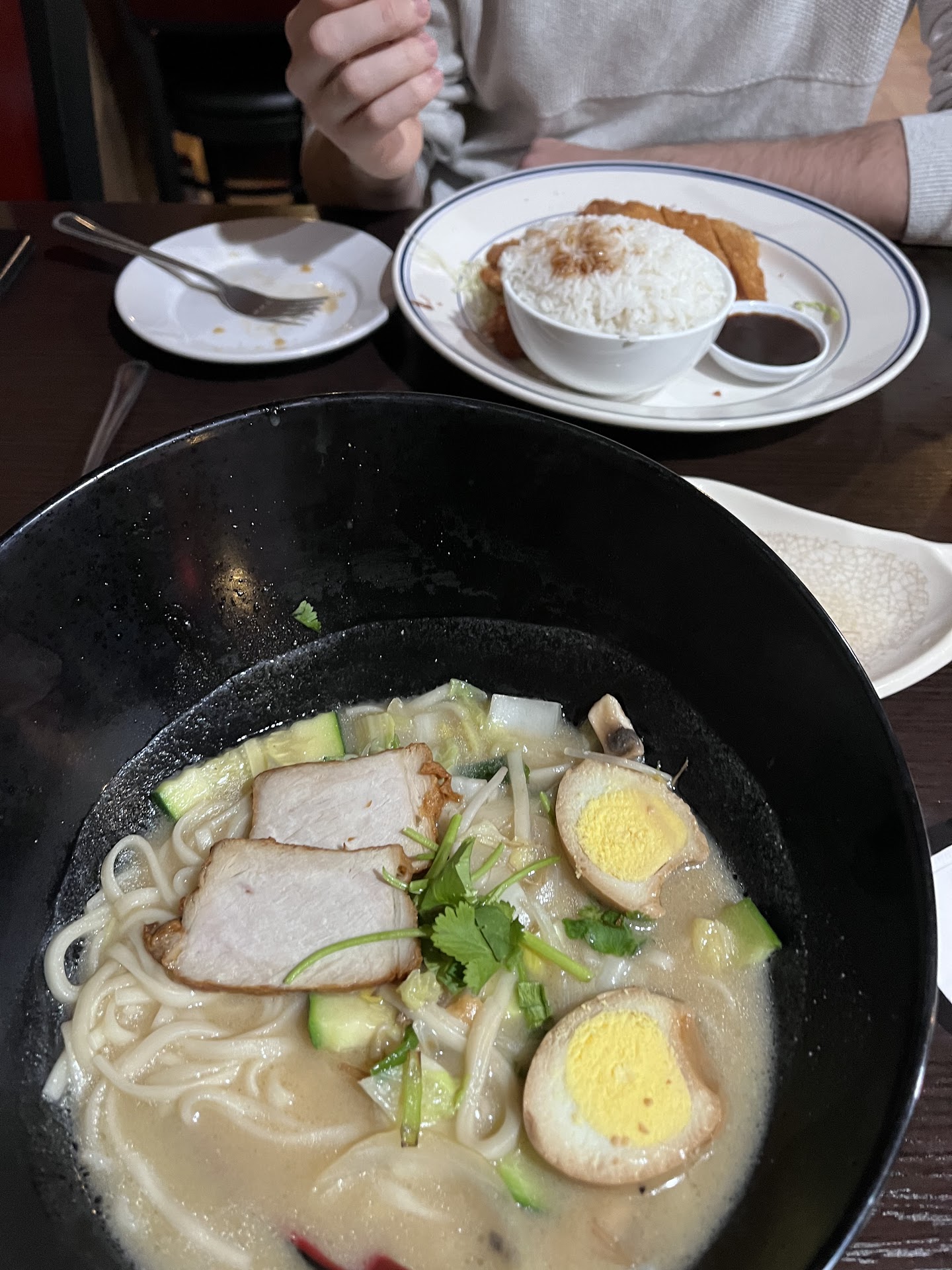 Okay I’m going to be honest. I’ve always passed this place and they never look like they have customers so I just never gave it another thought. Well, tonight was different. My sister and I decided to try some “authentic” ramen. When we pulled up the building looks vacant but we headed in and we’re greeted by a really nice girl. Me and my sister already decided what we wanted. I got the tan tan ramen with a side of fried dumplings. My sister got the spicy miso ramen. The service was quick and friendly and that was why it got 3 stars. But the food was another story. The ramen was in a huge portion and hot which is great. But realizing our ramen looks exactly the same. The only difference in taste is the spiciness of hers. Maybe we’re not used to the flavor but it was kind of bland. Just reminded me of chicken broth. The pork belly was tough and the eggs were also boiled so much it didn’t taste that good. The dumplings were something I could buy out of a frozen aisle. The food is average. But after me and my sister ate some we did not feel very good. It seems like they use a lot of oil. The food is average that’s all I can say. Would not come back but...