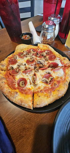 Recently opened. The decor lacks and they try to make up for it with live TV's all over the place. Not homey per se. The music is loud so you can't really hear your convo very well. That being said, none of that matters because if it's only the food that you seek, then come here. The pizza is wonderful. The tomato sauce is flavorful and the crust is perfect with seasoning. They had tiny cups of pickled carrots, celery and mini cauliflower. The potato bites were 2x times the volume of a normal tater tot. Think a warm twice baked potato encased in a tater tot. The nacho cheese that paired with it tasted like it had vinegar or pickled juice in it. Not the best kick and I think it could be toned down. But the tee time taters were good by themselves. Overall great. Lots of younger kids on staff. Small bar in back. Gluten free options are good with a cauliflower crust and a ciderboys grand mimosa. Husband liked his wheat free pizza. We tried this over 812 Pizza Co. this year. I hope it lasts until next year! Because we would come back. ✌️ I'm going to deduct 1 star because you simply cannot get one salad to go (Mulligan Medley) on their menu..boo hoo. Lord knows why. If it's the prosciutto, just remove it. No root beer, tapped out. Beer to go in...
