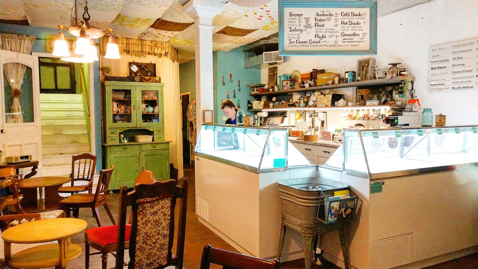 I had been told that this was the cutest and most fun ice cream shop but I had my doubts. I took my daughter and 2 granddaughters here for a treat and what a magical experience! First off it was a cold blustery day so surprise we were the only ones there. The lady (owner?) was so friendly and nice and very happy to let us taste any or all of the many unusual flavors they have. The ice cream is very good and doesn’t seem as expensive as some places. My daughter got her ice cream in a cup and IT WAS A RED ANTIQUE TEA CUP WITH A REAL SPOON!! All the chairs are mismatched and unusual. My 5 year old granddaughter picked the little school chair and was so excited. When you go.. make sure to look around at all the unusual touches.. old Golden Books have the menus inside. And they have a party room upstairs!! You could have your book club meet here or have bunch or Mah-Jung there!!! I will be...