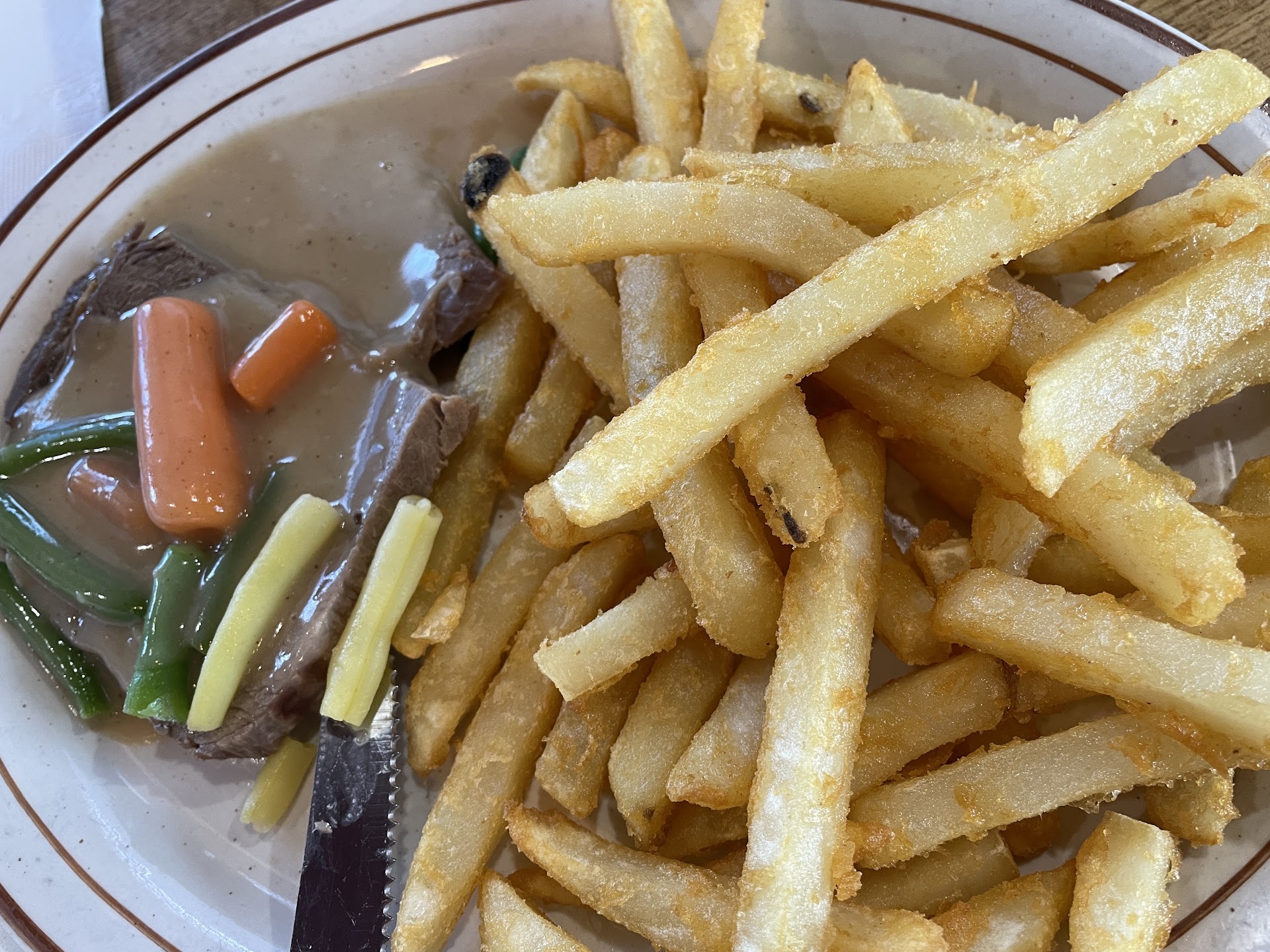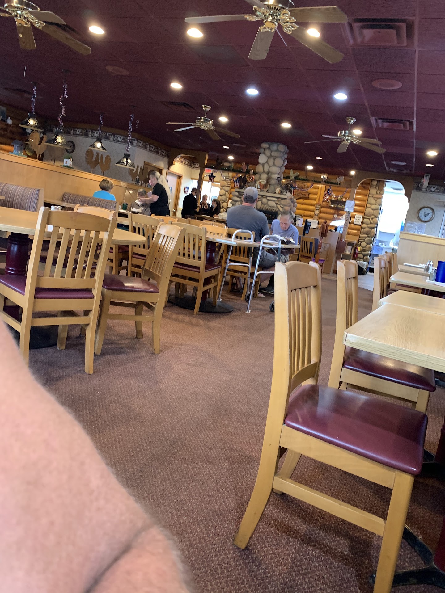 The food was delicious! I tend to eat the same sort of food at different restaurants, but I am so glad I didn't have a gyro or chicken tenders for once! Started off the meal with a salad and ranch. I won't lie... Ranch is my tell of how I start my judging process of a place. It was pretty good! I could find nothing to complain about! It just wasn't as thick as the ranch I have normally is all. I tried the Big Cabin Burger on a pretzel bun. It was a taste of heaven. They cooked it just the way I like it and I loved the sauce. There's lettuce, tomatoes, pickles, and onion... Just in case you aren't a fan of some of these. I don't do onion, myself. Their french fries are out of this world and still taste great later, too!
