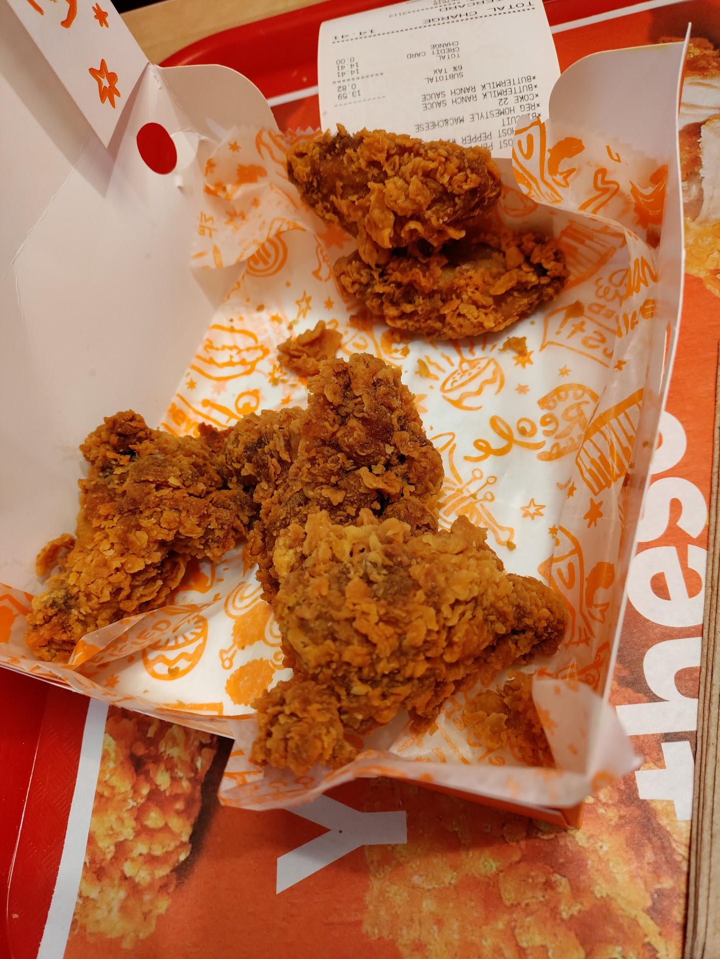 Read moreOrdered 12 piece Ghost pepper wings combo with Mac and cheese, wings were room temperature, Mac and cheese was hot but had a thick hard cheese layer on top that wouldn't mix in. Had to ask for napkins, then plastic ware and clean off our own tables. The young lady at the counter who took our order was apologizing everytime I had to ask for something, but the manager seemed to be bothered by me asking for my ranch that I didn't receive. Upon leaving the Manager asked how everything was on the way out the door. I expressed my complaint and he at first seemed stunned they I was negative and then apologized and wrote his name on my receipt to replace the whole order when returning. It was 9:30pm on a Saturday but still no excuse for not having fresh food. All the chicken was boxed on trays in the racks waiting to be sold. Maybe they will be better next time. I'll mention that There were 3 employees working at that time including the manager. Yes we were hungry and ate the...