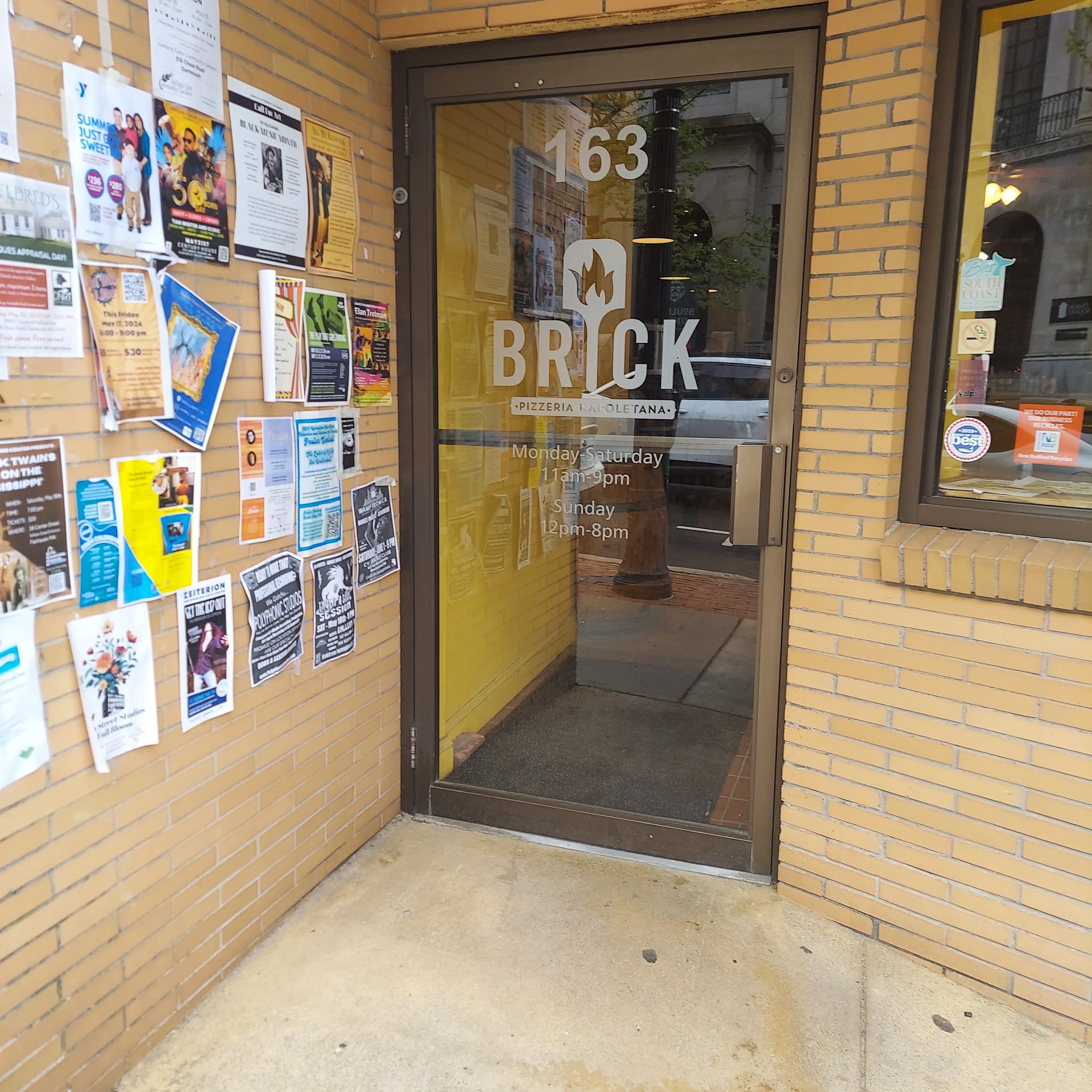 Β Β Β Read moreDespite a location adjacent to a paved pocket park and within walking distance of the Zeiterion Theatre, today the Brick Pizzeria Napoletana serves up miserly pizzas in a sterile, self-serve cafeteria setting. Though pricing is moderate, servings are rationed. In the past, it was a worthwhile dining destination. Now, the quality and selections have plummeted.The Spinaci - spinach goat cheese pizza had a sprinkling of leaves and less goat cheese that had to be altered with an arugula salad to make it palatable. Prices quoted online have been raised on the menu. The meatballs, though tasty were three and undersized for the price. They no longer have calzones on the menu. The Bruschetta had a few halved cherry tomatoes and no basil though lots of mozzarella. It was doctored with the red sauce from the meatballs and arugula.Then it was delicious.The Carmine had few caramelized onions. However, The cannoli was exceptionally good. Unfortunately, there was no espresso coffee with dessert. Something has changed here? Perhaps they are under new management or are over franchised? Whatever happened, the place now lacks quality, authenticity, and ambiance and may lack customers if it does not get its act together. This is...