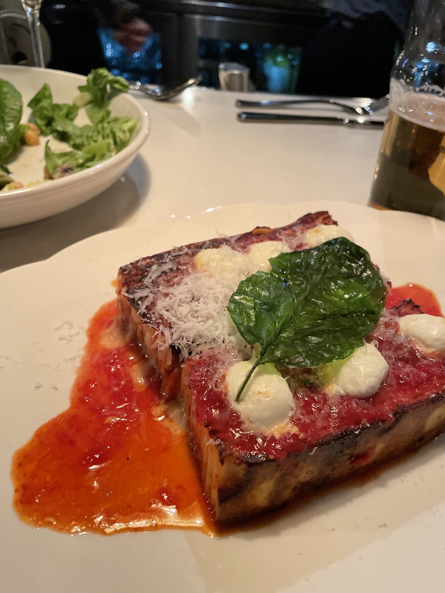 Then we sit in an area that is to crowded for tables as close as they were I mean it felt like we had a triple date with the couples next to us , being able to hear every detail of their conversations and barely my own. Our server was poorly trained , for one he rubbed me the wrong way when I caught him attempting to look down my fiancée’s shirt, Then he tried taking my drink not once but twice while it was still 1/4 full. He then walks by when it’s empty looks right at it and leaves it for a ridiculous amount of time. Many more minor grievances to list not worth getting into, Had it not been primarily children running around maybe service would’ve been better, our to go box both plates were simply dumped on top of each other :/ My fiancée’s salad she ordered no dressing very dry and very little Of anything else other then lettuce which wasn’t chopped as a chopped salad should’ve been.