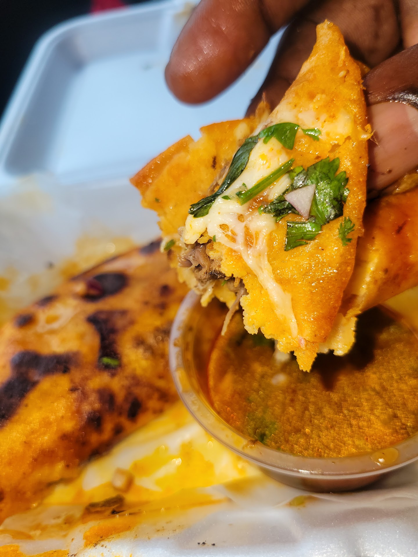 Small, no frills, family owned Mexican/Guatamalan/Salvadorian restaurant, place has been around for 4 yrs but for some reason i didnt discover it til yesterday (i dont think they have a sign) so decided to try it for dinner tonight. Got 2 orders of birria tacos, the consumé is perfect, you get 3 fat tacos stuffed with shredded beef soaked in delicious juices and lots of cheese. I will say they were a little messy but all 3 held up the whole way thru, even when dipping. Also got 1 bean & cheese and 1 pork papusa, the owner was nice enough to let me try two kinds by ordering one each, usually an order comes with 3 i believe. The corn dough is home made and the filling inside was exactly what youd expect from a really good papusa, perfectly seasoned pork, slightly salty cheese & refried beans. I took the liberty of dipping it in the consumé, thats the move for sure. Lastly, i got a sope de pastor, normally i get chicken but tried the pork and it was the right choice. The sope wasnt overly greasy like they sometimes can be and was loaded with el pastor, sour cream, cojita cheese, lettuce, tomato, onion and cilantro. Smeared some of the spicy green sauce they gave me and let me tell you what, i think we just found our new go to spot for Latin/Hispanic food. Dont sleep on this place, great people, great service,...