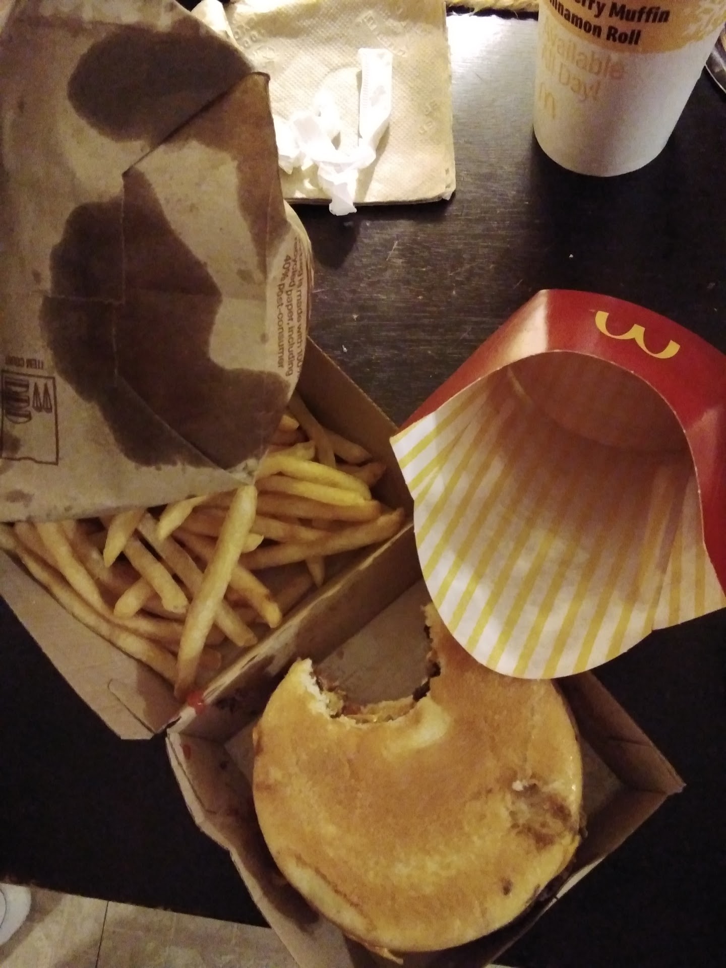 i have come to this mcdonald's many times because of its location and the fact that it is a 24hr location. at 2:30am march 23 2015 i used the drive thru at this location i order 2 cheeseburgers with no pickles, 2 hamburgers (nothing special about them) and i was suggestive sold an apple pie. i spent the last 5 hours at the hospital prior to my visit and was excited to get home and enjoy my food. however when i got home i opened up my first hamburger to find it flattened like a pancake and noticed it wasn't very flavorful, so i opened the burger up to see that it only had ketchup in it... nothing else... then i opened up my other burger to see it was flat AGAIN and only had ketchup in it. the cheeseburgers were as i ordered them but this is not the first time that this has happened at this location. i completely understand if they were "reused" from another order that for some reason didnt go out but i expect if thats the case for the employees would have at least checked the contents of the burger to make sure it was as i ordered it. this was the final straw for me and this location. i have already had many friends stop going here because of the lack or quality service and from spending a good 10 years of my life working in the food industry i find it outrageous that this happened AGAIN. i will no longer come to this location and i recommend that until they update, upgrade and rehire their staff that no one goes there either. thank you for your time. ...