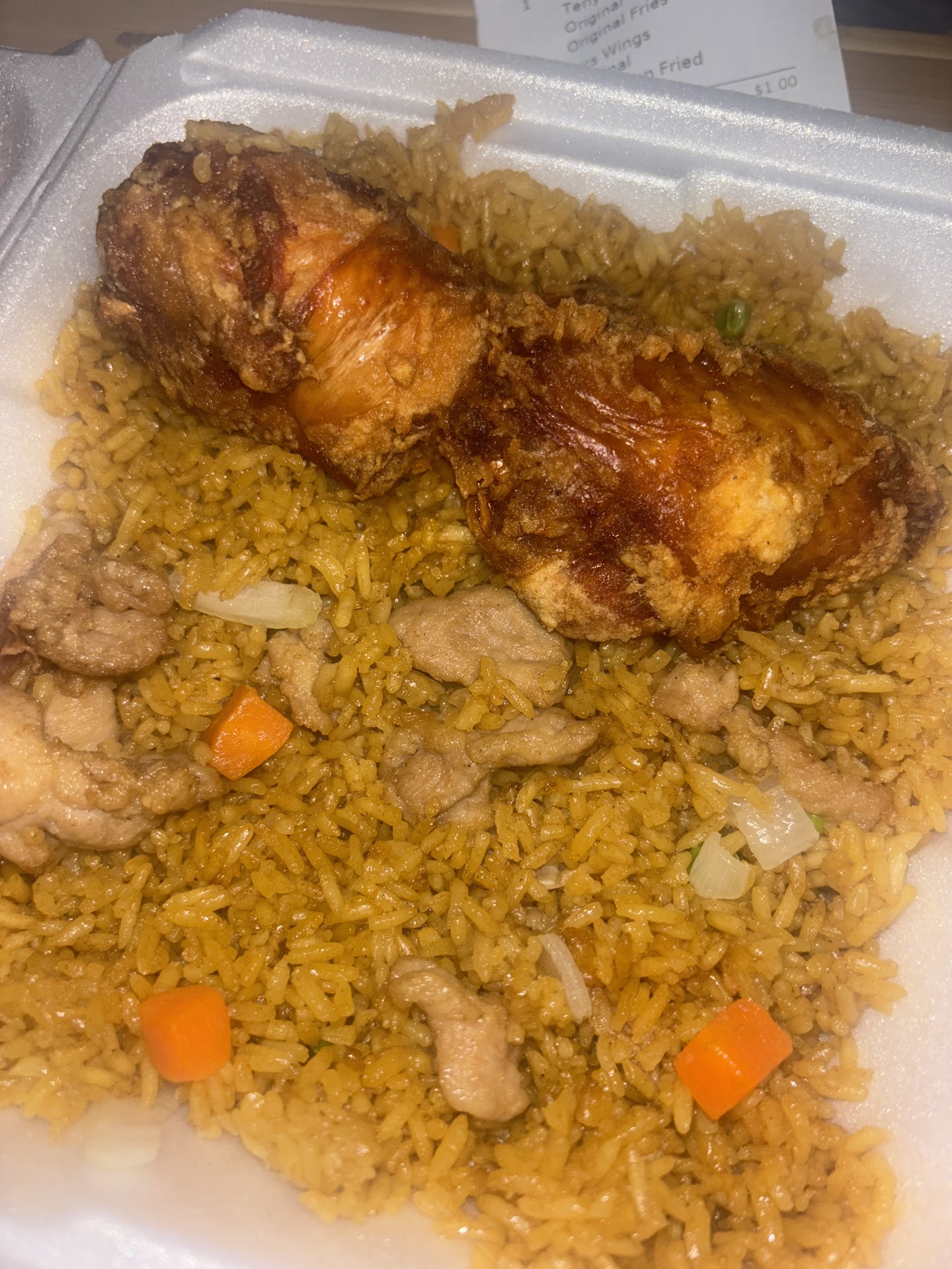 I was really hoping to like the food here. Judging by the presentation and the menu board, my expectations were that of the food court Chinese spots that served up “blue plate” offerings and never disappointed. I chose the orange chicken with vegetable fried rice. Instead of crispy fried, succulent pieces of hand breaded chicken, I was served what I can only equate to Buffalo Wild Wings boneless wings (my roomie works there and brings them home often) in albeit a flavorful orange sauce that was lacking in a sufficient amount to even cover all of the pieces of chicken. The rice was extremely bland but to their credit was full of fresh vegetables. I had to douse it in soy sauce to make even remotely palatable. My other half opted for the beef & broccoli with chicken lo-mein. when asked for an opinion, I was met with “hey, we wanted to try it, we did, but I’ll stick to our usual spot.” The egg rolls were filled with the same filling as their spring rolls. Neither were great nor bad. The one thing they got right were the crab rangoons. They were filled well and tasty. The place was clean, staff were friendly, prices comparable to other, in my opinion, much better choices to order...
