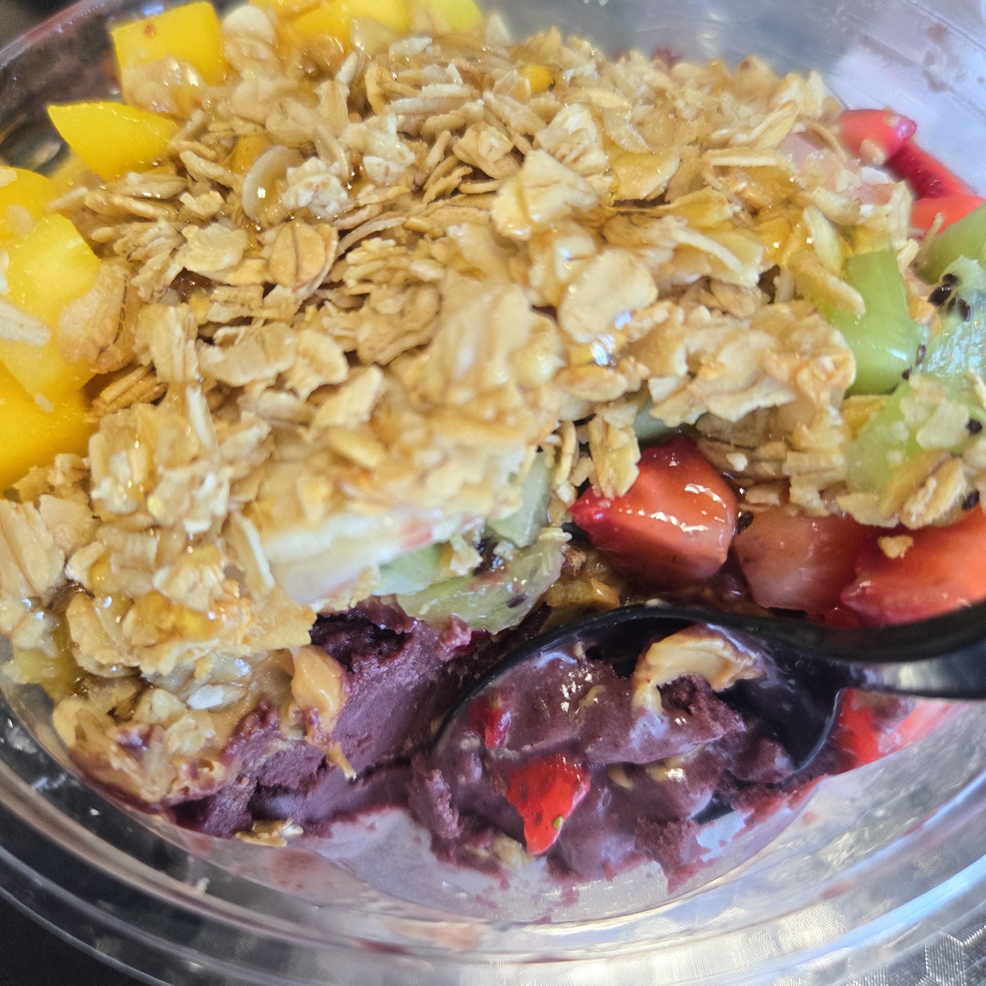 The over-the-top religious quotes and iconography are a little creepy and off-putting. I could probably overlook that, but when I was there, the one person working was a little abrupt - not exactly rude, but not friendly, either. Additionally, I was a little surprised that a place that essentially specializes in what are effectively fruit smoothie bowls didn't have a single item on the menu that was already vegan - of course there were plenty of items I could order w/ modification, but if a business expects me to part with my money in 2023, they should have at least 1 item on their menu that caters to my needs. The bowl itself, once I had the grumpy employee leave out all the dairy based fixings, wasn't bad. I'm not sure if it was worth the price, but to be fair, I'm still suffering some inflation related sticker shock in general. Over-all, the experience was pretty unwelcoming. I'll likely be back once more, just to give it a fair shake, but I'm not holding...