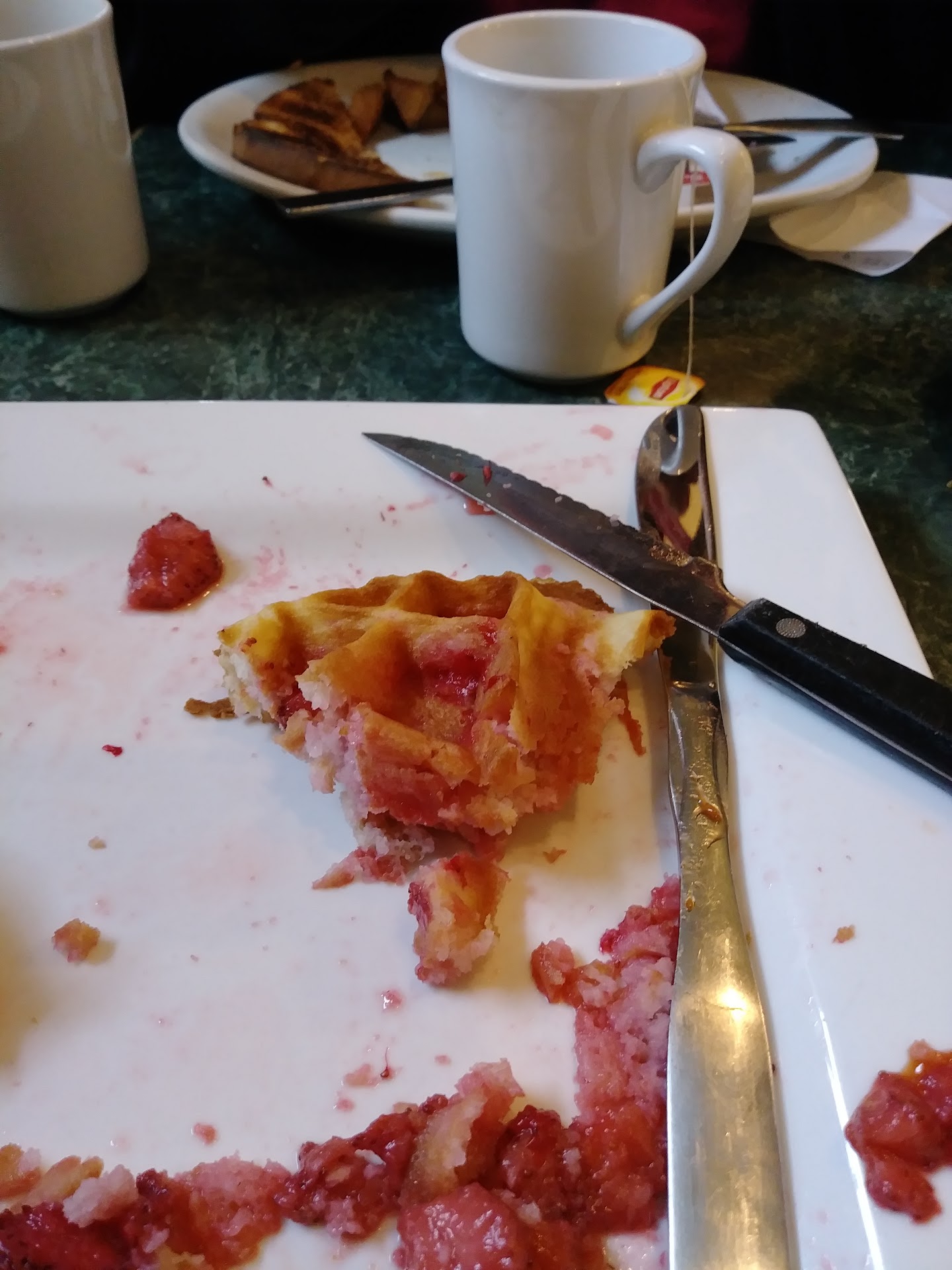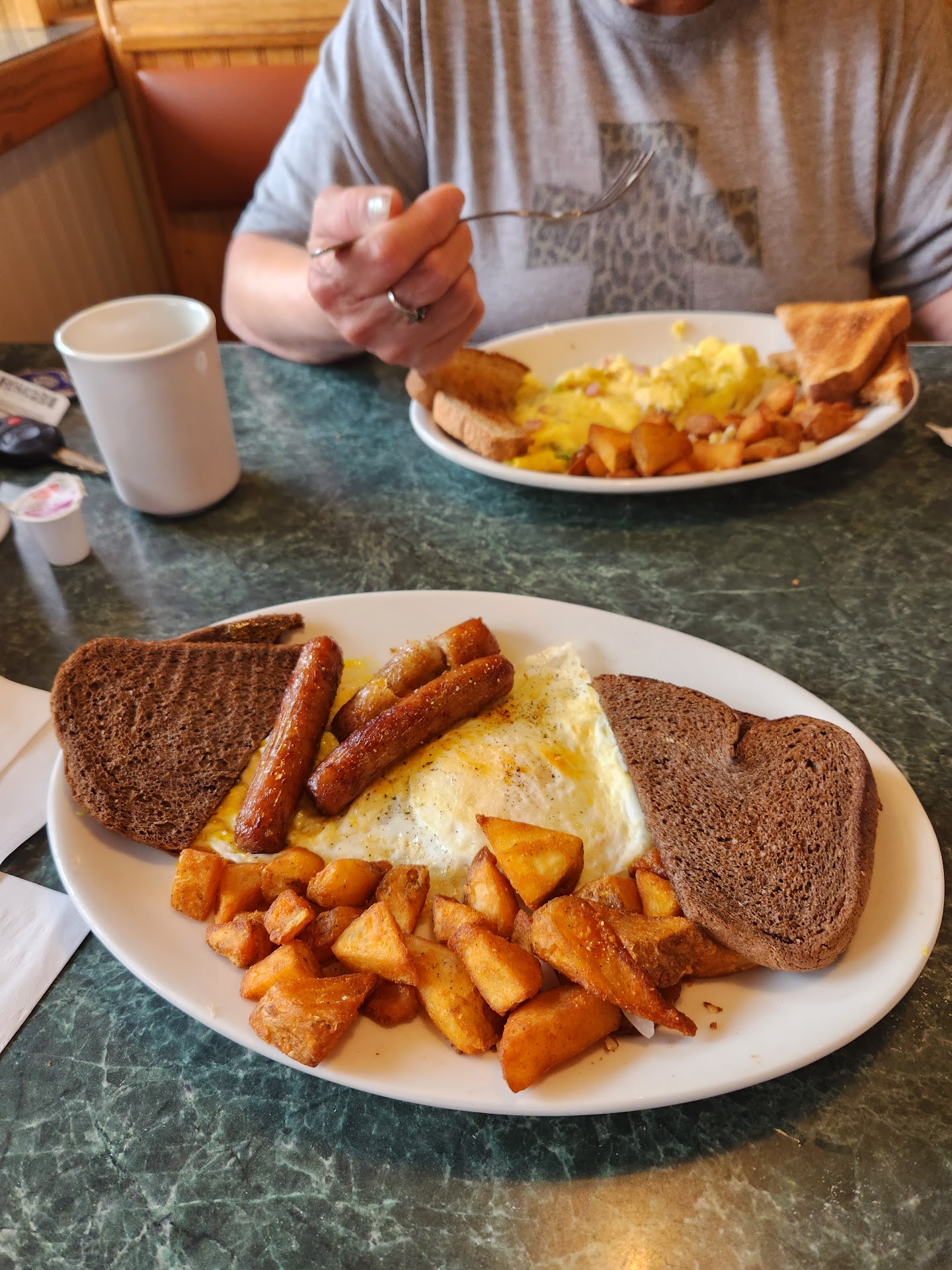 Although not many vegan options to choose from on the menu. I did get the waffles and home fries and tea.. The home fries were so good, I forgot to take a photo of them! Next time.. We met the owner in which my friend was able to use his little bit Greek language with the owner who was pleasantly surprise to hear someone other than him speak his tongue. He was very genuine and pleasant to meet. I enjoyed my waffles and home fries. The home fries were nice and crispy on the outside and light airy on the inside. You would never know that the home fries were fried because there wasn't a trace of grease left behind on my plate or fingers after we demolished them. 😁 Even though this wasn't a vegan restaurant. I would come back for a large plate of their tasty crispy home fries with finely chopped red onions for a wonderful taste and to chat with the freindly...