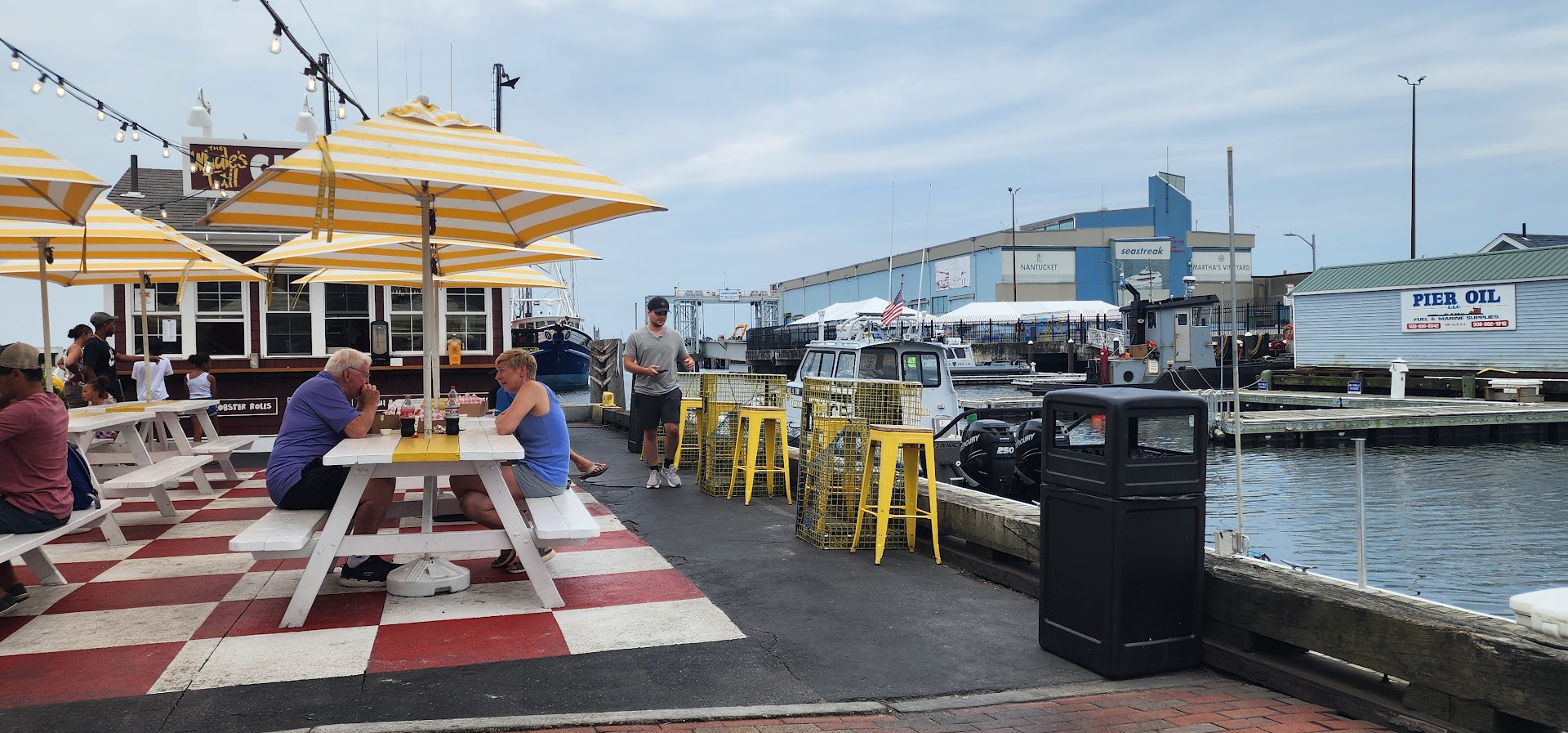 Service is impeccable. Everyone is very friendly. The setting, on the harbor is magical. There is plenty of seating. There is a need to clean tables more. We self served by cleaning our table, We ordered a "colossal" lobster roll (42.00 with tax). It was about 8 ounces of meat. We ordered it with brown butter. The standard rolls was buttered and toasted. The meat came in chunks. Sadly, the meat was incredibly chewy and not too flavorful. The hand cut fries were delicious. I am unsure but believe they are frozen. Our experience was delightful despite not enjoying our roll to the fullest. It's about the...