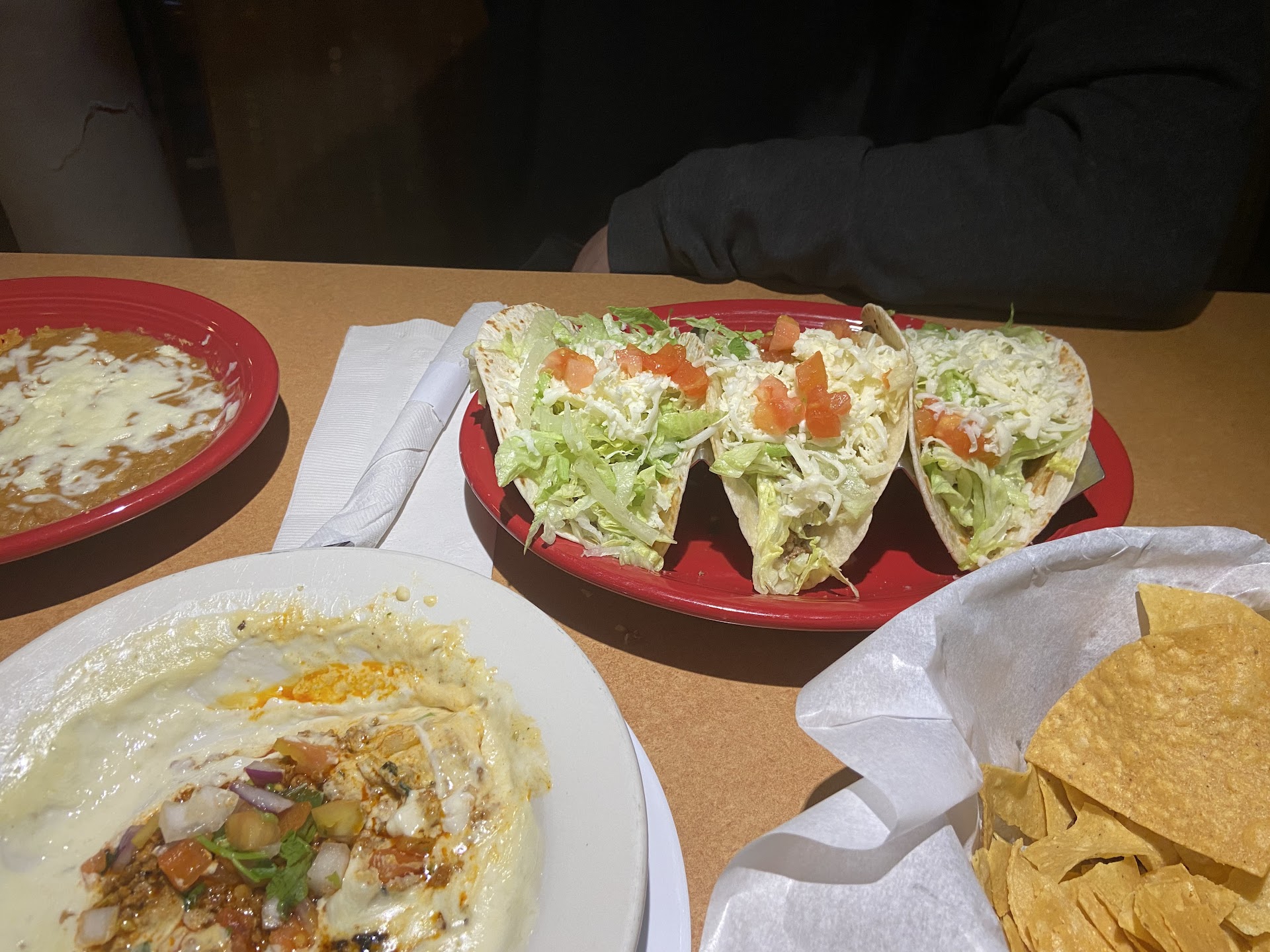 I ordered a "Create Your Own Combo" meal with one quesadilla and rice and beans since I wasn't too hungry (plus, I have a hard time resisting the free chips and salsa). The salsa is nothing special but does the job. We also ordered the Choridip, which was great with the chips and as a topping for our entrees. My husband got the steak fajitas. The food came out quickly and in generous portions, so we had leftovers to take home. Unfortunately, my chicken quesadilla was a bit disappointing--the meat was watery, which made the tortilla soggy.