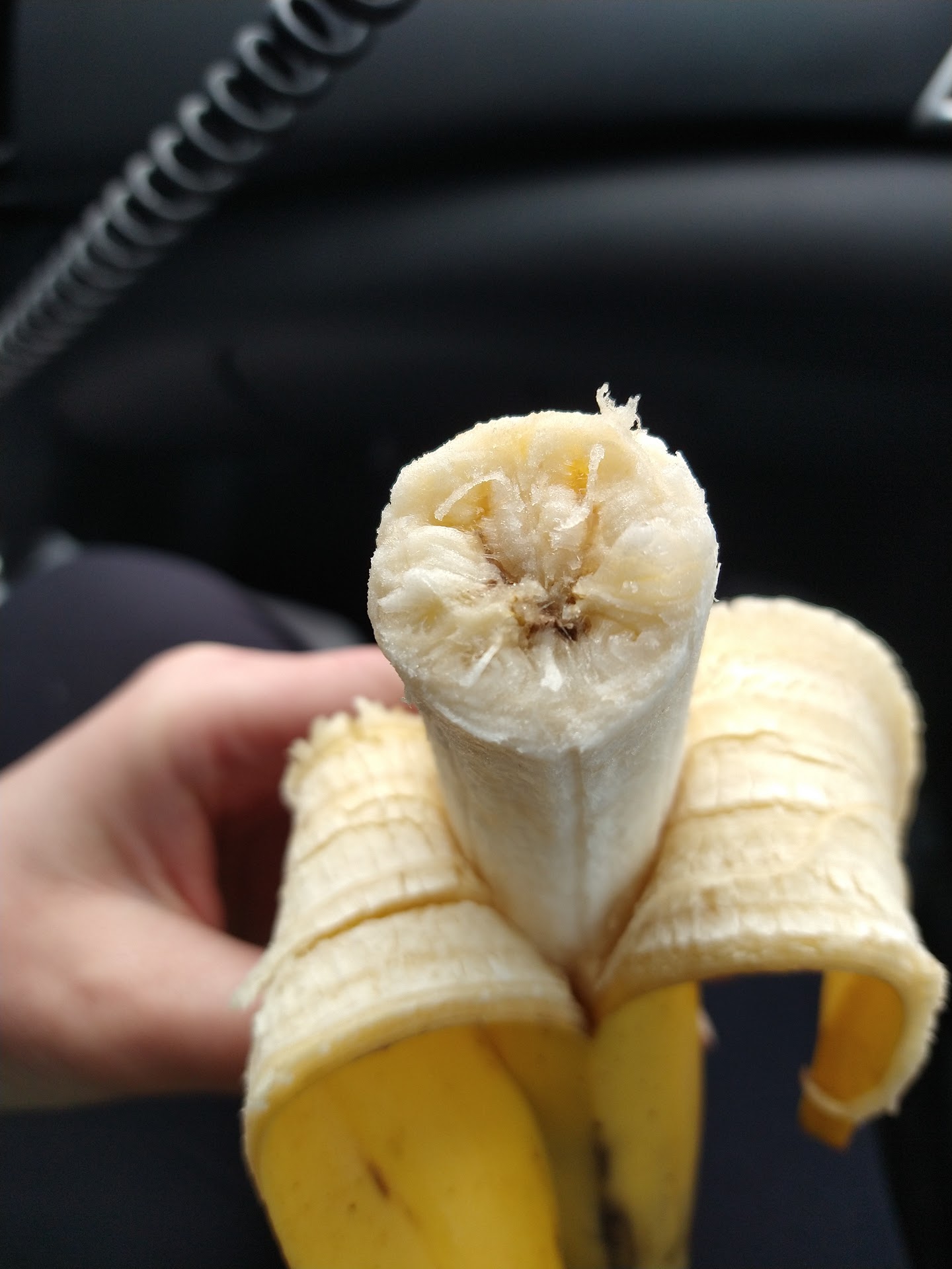 I get to my destination with my food... The banana was black. I tried to open other end... It had a black stripe all the way through. The snickerdoodle cookie I ordered was...