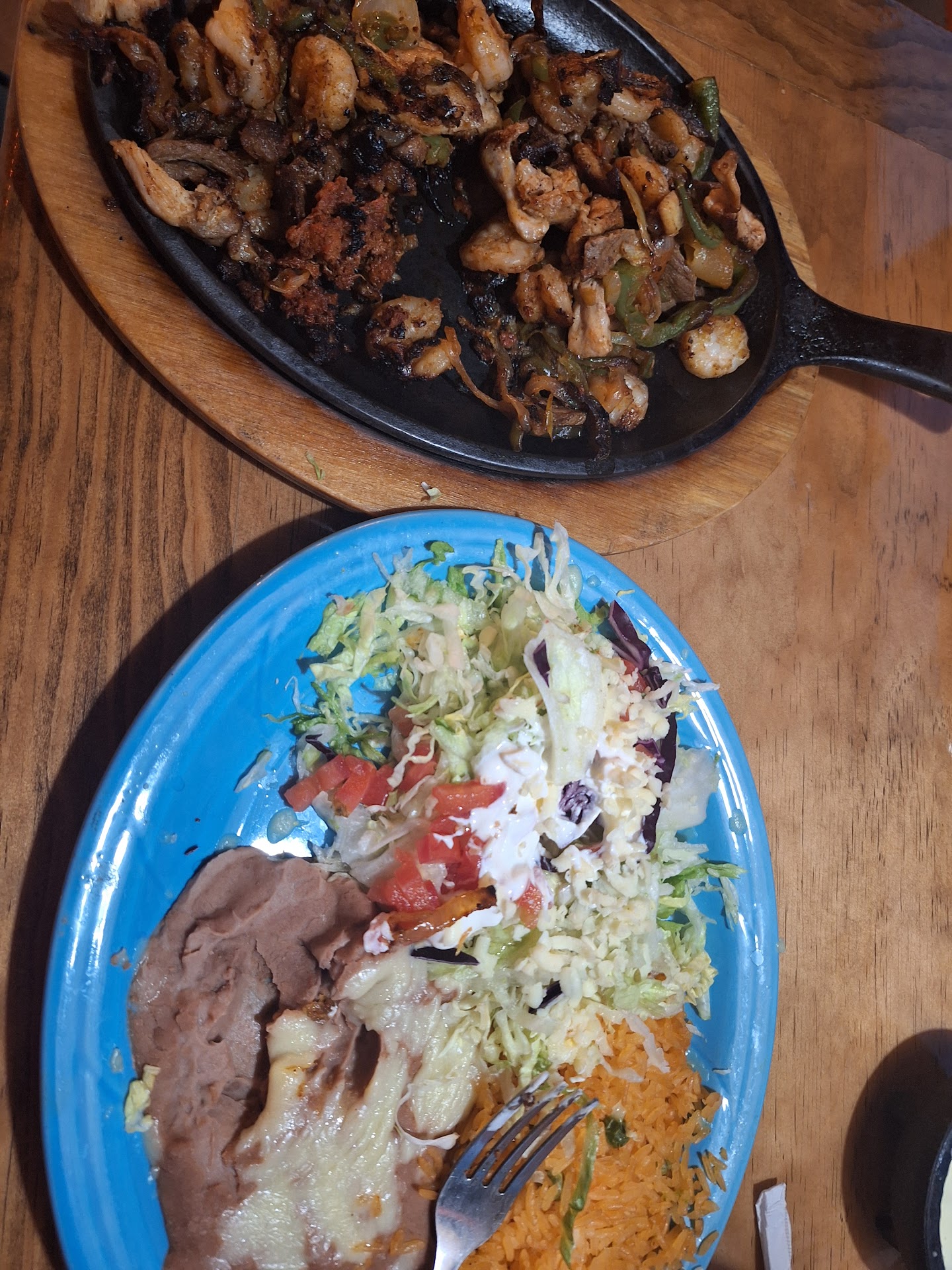 The food was at least edible, but that doesn't say much. Dried out burritos, fajitas were hot, but tortillas and everything else came 10 minutes too late. Spicy chorizo burrito had some spice to it. But you could make this at home for less $$$. The refried beans came from a can, very little seasoning on everything. It's really not hard to put shredded lettuce, sour cream, a tad bit of guac on a plate. Seemed more like you went to a friend's house for Mexican food, and they had no idea how to make Mexican food.