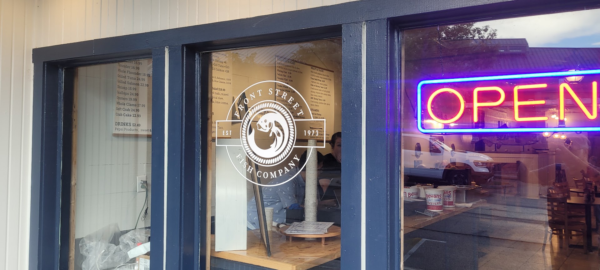 I got my drink and sat down after having a quick word with the owners Trey and Laura. You will not find two nicer people. Shortly after sitting, my food came .... oysters and scallops!! OH MY! They were perfect. Lightly breaded so you did not taste breading ... you tasted seafood. And it was GREAT!!! Came with fries and cole slaw. I don't like seasoning on fries, so they kindly made sure I did not have any. Cole slaw was great.
