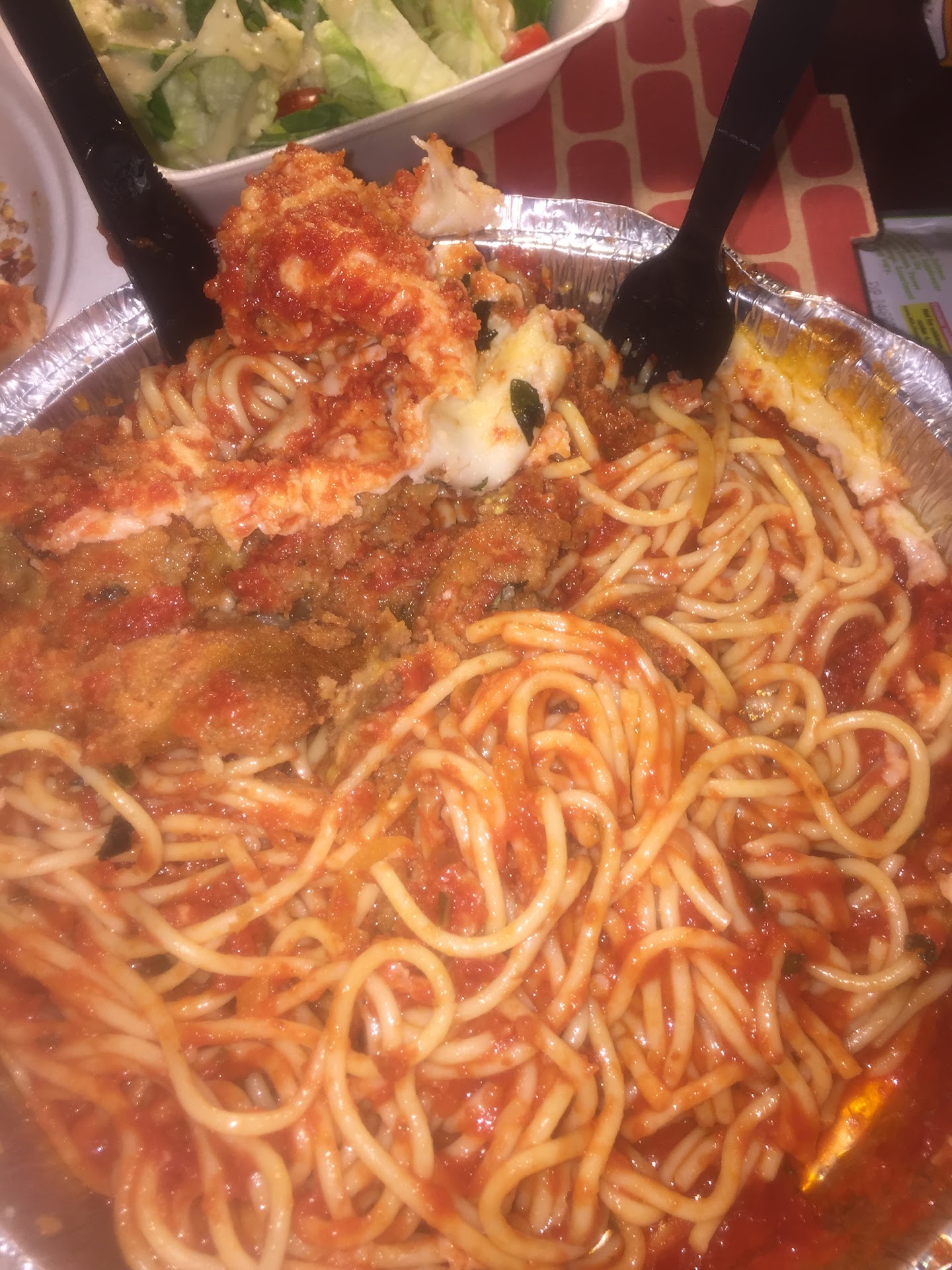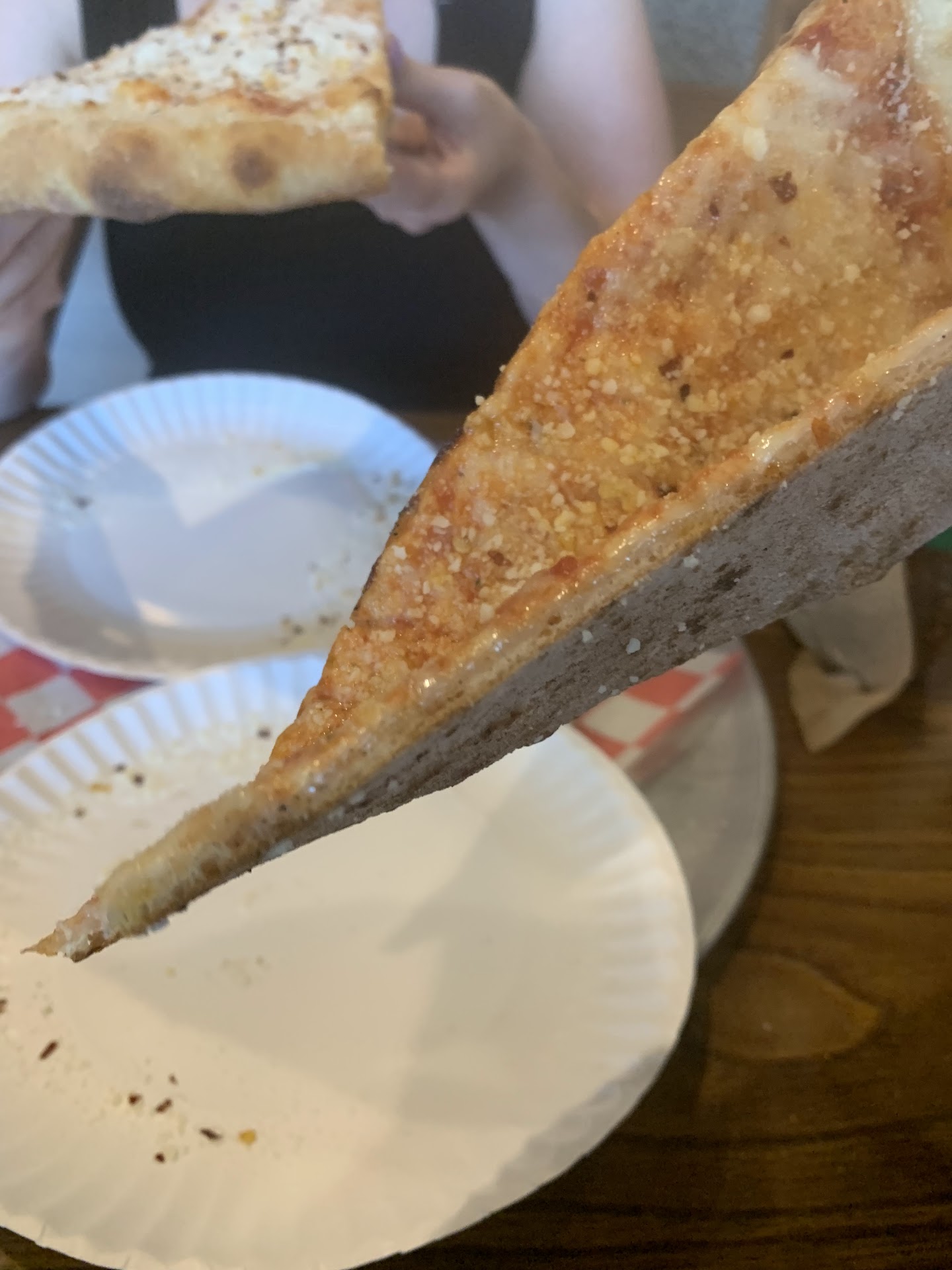 Food: Garlic knots — 2/10 Side salad with entree - 10/10. Excellent quality, portion size, freshness of ingredients used. 3rd party pre-packaged dressing. Pizza (sauce, moz, ricotta, basil — I scrapped the chopped basil off of the mozzarella on my eggplant parm) — 5-6/10. Eggplant parm — 2/10. 1 lb of mozzarella on top. Removed the layer of cheese, to find very little eggplant and a mountain of spaghetti bathed in a bland gravy. Not good enough to compare against real mom-and-pop Italian joints so would compare this against OG and would have to say that this is not even on par with OG. Owner looked like Jersey Shore Italian but this food didn’t taste like it’s being made by anyone who grew up eating Italian food. Frozen, 3rd party tiramisu (wouldn’t expect homemade at a pizza joint but defrost the darn cup before selling it please). Shrimp scampi 6/10— this is called linguine with “white sauce” so I asked is this Alfredo shrimp and I was told no it was a garlic / butter sauce — no heavy cream / cheese, I said then it’s a scampi “I don’t know, I guess.” Should have known on the phone to go elsewhere. Wish I still...