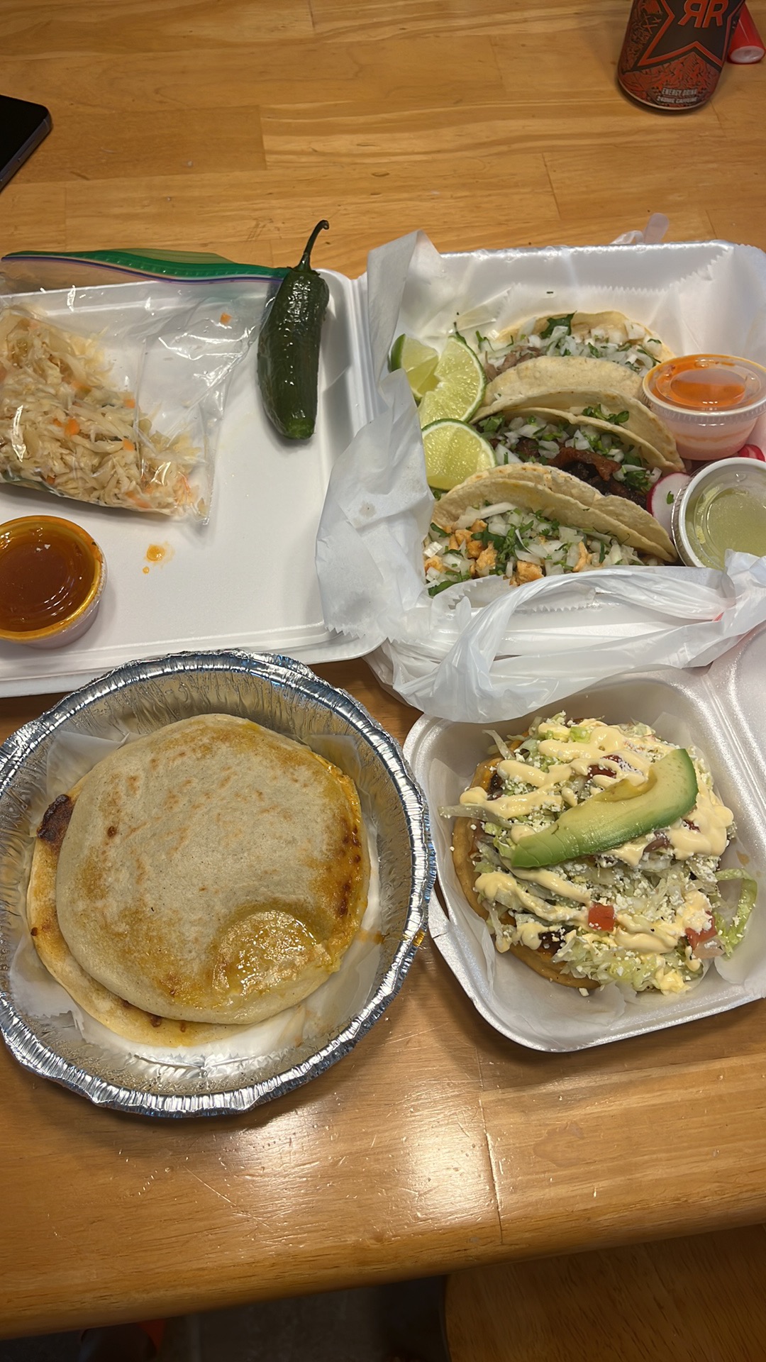 Great El Salvadoran and Honduran dishes served along with street type tacos (pastor are my favorite) in a casual dining area. To go business was very busy and fast!