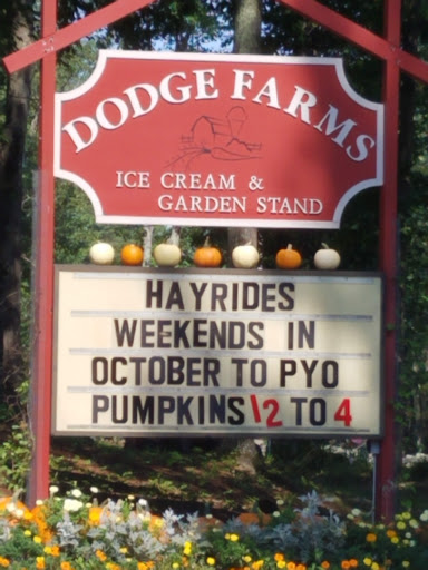 This place is a local gem. Dodge's Farm and Ice Cream has so much more than Blake's ice cream and other treats. The stand is nestled on a working farm, With animals such as sheep, goats, pigs, bunnies, and even a few peacocks! There's a sand mound and toy trucks to play with, along with toy cars for riding in. There's even an old red tractor for a fun photo-op with the family. Usually each year, their are pregnant goats, and it's fun watching the cute baby goats being born and running around shortly afterwards. When in season, the farm stand is stocked with fresh, locally grown produce, meats, and local New Hampshire treats such as maple syrup and honey. The honey sold here at Dodge's Farm has single handedly gotten me through allergy season year after year, so be sure to grab a jar. In the fall, they sell pumpkins and gourds and offer hayrides on weekends. In the spring time, their greenhouse is filled with a variety of plants and flowers as well, which is great if you don't like planting from seeds. All in all, Dodge's Farm is a favorite local spot for my family to spend an...