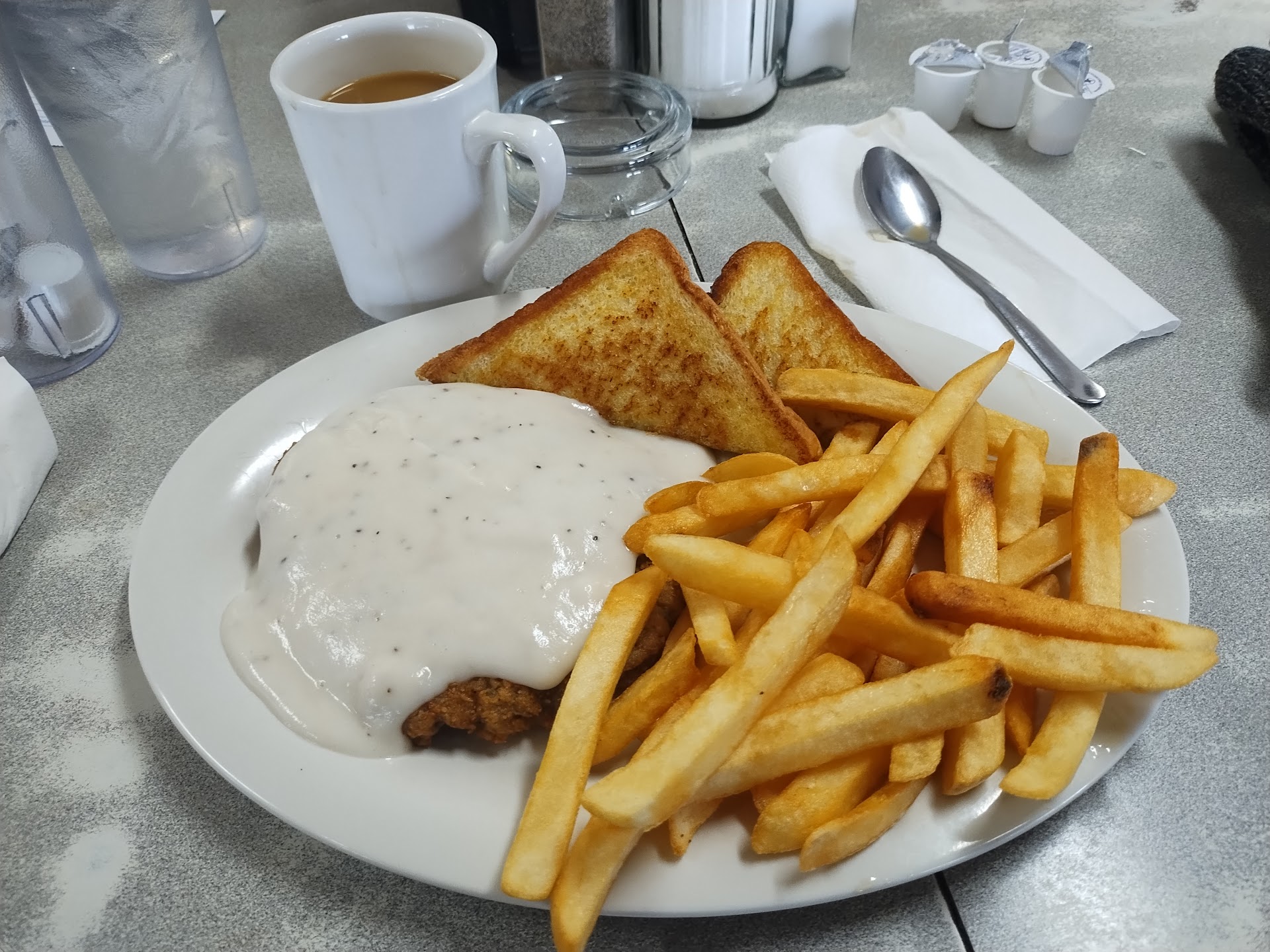 Been stopping here for over 15 years. One of the best places to eat, between South fork (I-30,x-86 AK) and Dallas. Mostly order a well done cheeseburger and fries. They have always been the way I liked. Today, I had to wait longer than normal, for my sweet tea and to place a order. Couple others got to order, coming in after me. My cheeseburger was still alive and the fries could have stayed in a bit longer. But I had to clean off the men's room seat. Been awhile since it was cleaned. Don't know if I will stop here again.