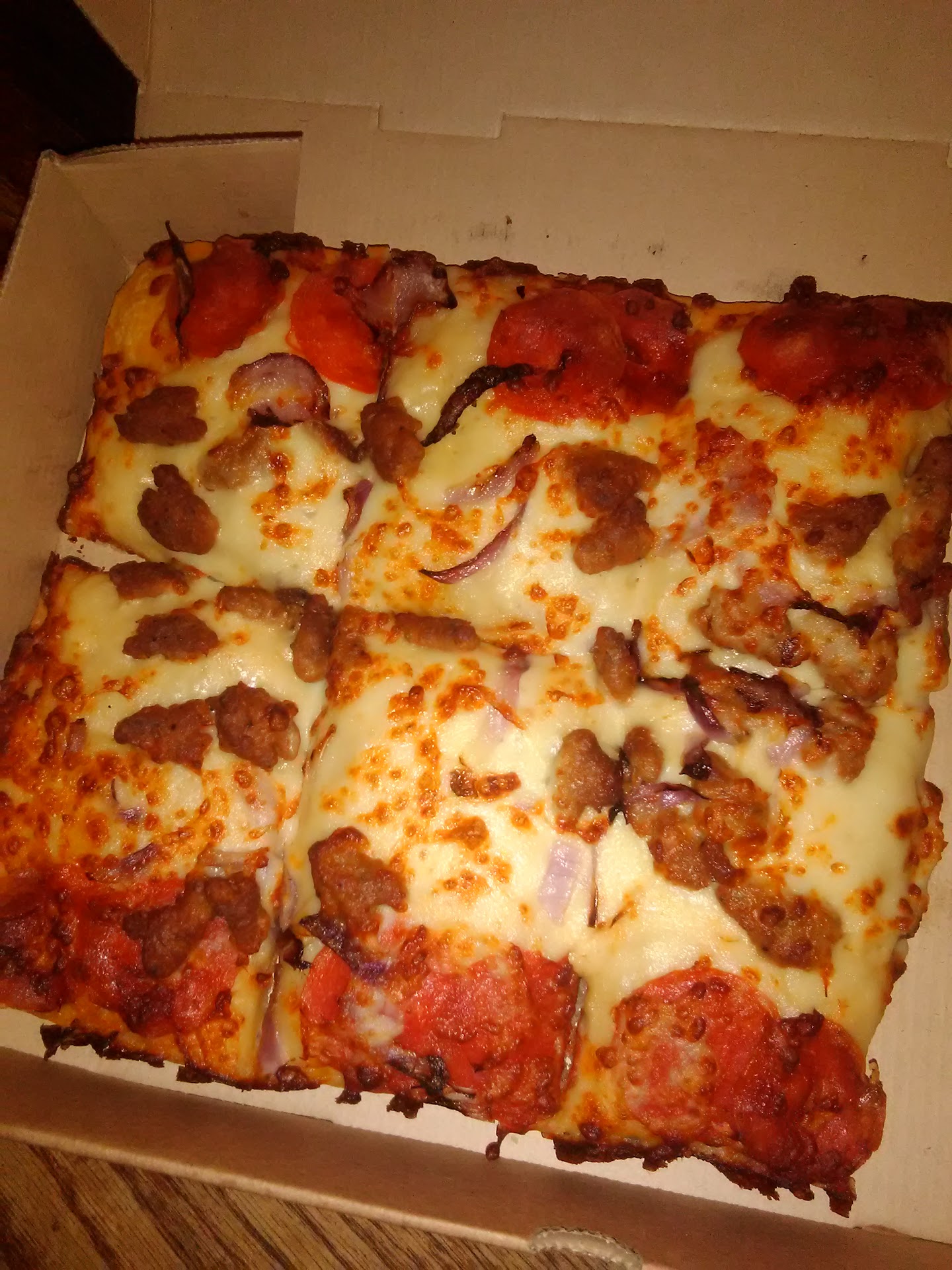 Ā Ā Ā Read moreNormally I have good experience ordering from the New Boston Pizza Hut. But this time it wasn't all that great. I received the worst pizza I ever got from here. I decided to try the new Detroit pizza. It looked very delicious from the previews. I order the meat lovers one on the online page and requested to add onions and diced tomatoes to it. I was charged for both, but never received my tomatoes on it and it had very little onion on it. Wasn't happy to be charged for something I never received. But that's not the worst part. They never added the pizza sauce that's suppose to come with it. I ate two slices, but it was very dry and bland without sauce. The only sauce I had was that tiny little cup they give you for breadsticks. Which by the way, isn't enough sauce for five breadsticks. I'm not a happy customer. If I lived close by I would have sent it back and request for a new pizza or my money back. But I'm not driving 20 minutes away again for another pizza. So instead I decided to leave a review. Which is something I...