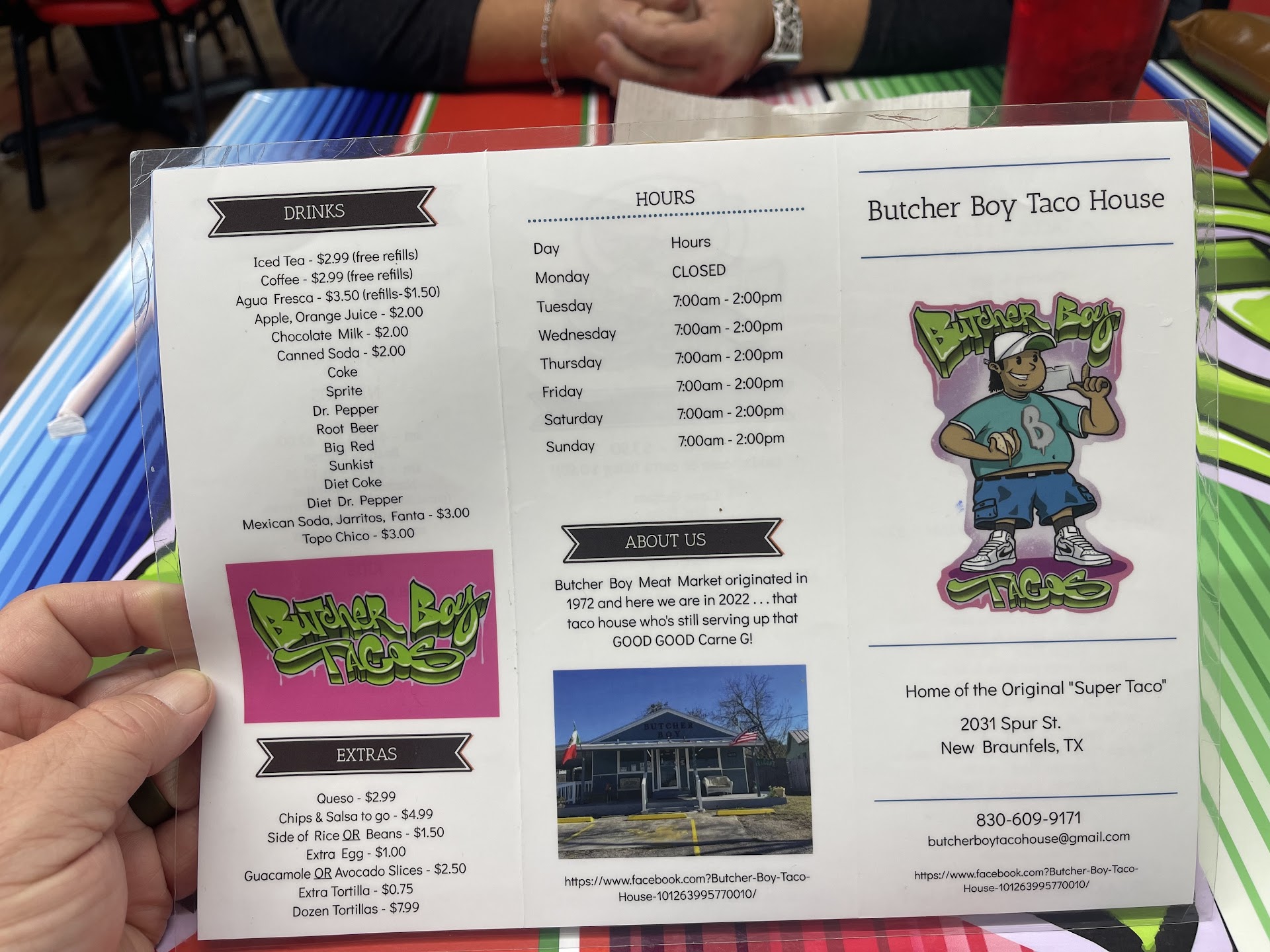 Read moreSo Disappointed! Last time we came we waited over an hour but the service has always been good, as well as the food. We watched others get their food that day that we came in before. We let it go and just enjoyed our food that time. We come here often. Today we are here and 45 minutes has passed. Everyone that has come in after us has their food. We even asked the server if they were backed up and told her what happened las time. She said not too bad, mostly to orders. Here we sit again. Why? I know the owners aren't working or the usual staff that we see with exception of one server. That could be the problem. We decided to get up and leave this time. Explained to cashier and server this was not okay and we were going to leave. Server said okay, I'll let the kitchen know and that was it. I vote for Butcher Boy for Best in New Braunfels. This will be the last time. Customer Service is just as important as your food quality. Do better...