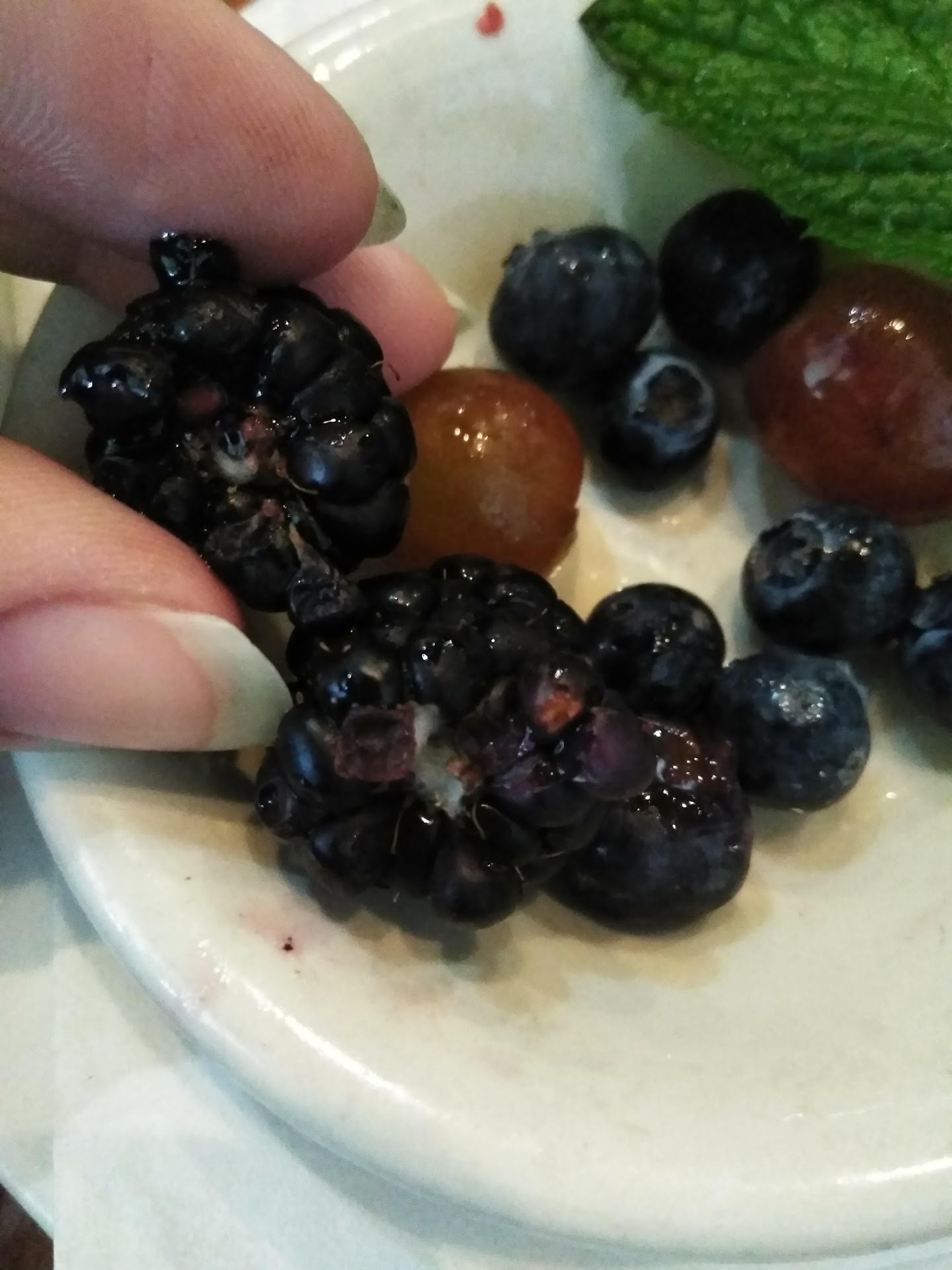 Ā Ā Ā Read moreToday was the first and last time we will be going here. We heard a lot of great things about this place and we're looking forward to trying it out. Our waitress was quite rude, she was annoyed when I asked to substitute the bacon for fruit and said they don't allow substitutions (didn't see that on the menus anywhere, but that's okay) and I had to order my breakfast as individual items. I got a single pancake, diced red potatoes, two over medium eggs and a small bowl of fruit. My husband got the chicken fried steak breakfast. The steak and our potatoes tasted like they had been fried in fish oil, my eggs were over easy and very runny and there was mold in my berries. My pancake was good, the slices of bananas were pretty alright and my tea was okay also. The strawberries were not ripe and were bitter, I didn't eat any eggs and only part of my potatoes before pushing them away. Our waitress took my plate, didn't ask if anything was wrong though clearly you could see I hadn't hardly touched it. When she brought a refill of my husbands drink she plopped it down on the table and actually spilled some on the table, didn't say anything or attempt to clean it up and left to get our check. She sat the check down on the table and said she would pick it up when we were ready. Never once asked us how our meal was, even though, again, you could see neither of us actually ate much of our food. She saw me taking these pictures of the bad fruit and never once asked us if we had any problems. We won't be returning, would rather eat at...