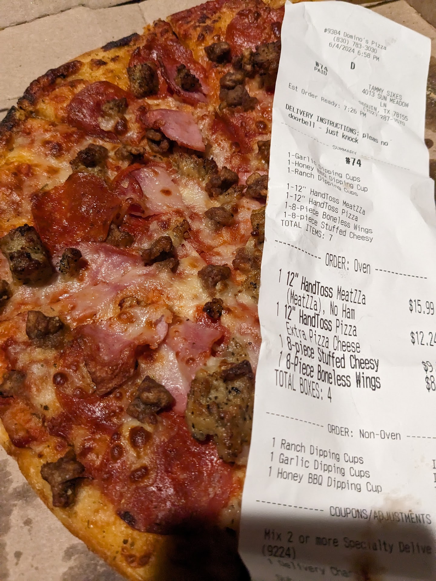 Read moreI placed an order on the app with a pickup time of 7:50-8:00pm. The order was being worked on by Daniel but was forgotten about. I arrived early and waited to about 8:05pm with no updates in the app. I called the store and was told it was being worked on and going into the oven without an apology or explanation as to the delay. I watched them during the call and they had to scroll pretty far back on their computer to find my order. If I had not called they would not have worked on my order. The order was done a little after 8:20 with no explanation or accountability...