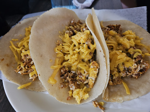 During one visit, I ordered the chorizo breakfast tacos on corn tortillas and asked to add cheese. What I expected was the breakfast version (with egg), but instead the server brought me plain chorizo and cheese tacos—more like a lunch item. Because of that mix-up, I was charged full price instead of the breakfast special. The flavor was fine, but without the egg, the chorizo was just too rich and overwhelming. I pointed directly at the breakfast menu when ordering, so I chalk this up to a communication slip.