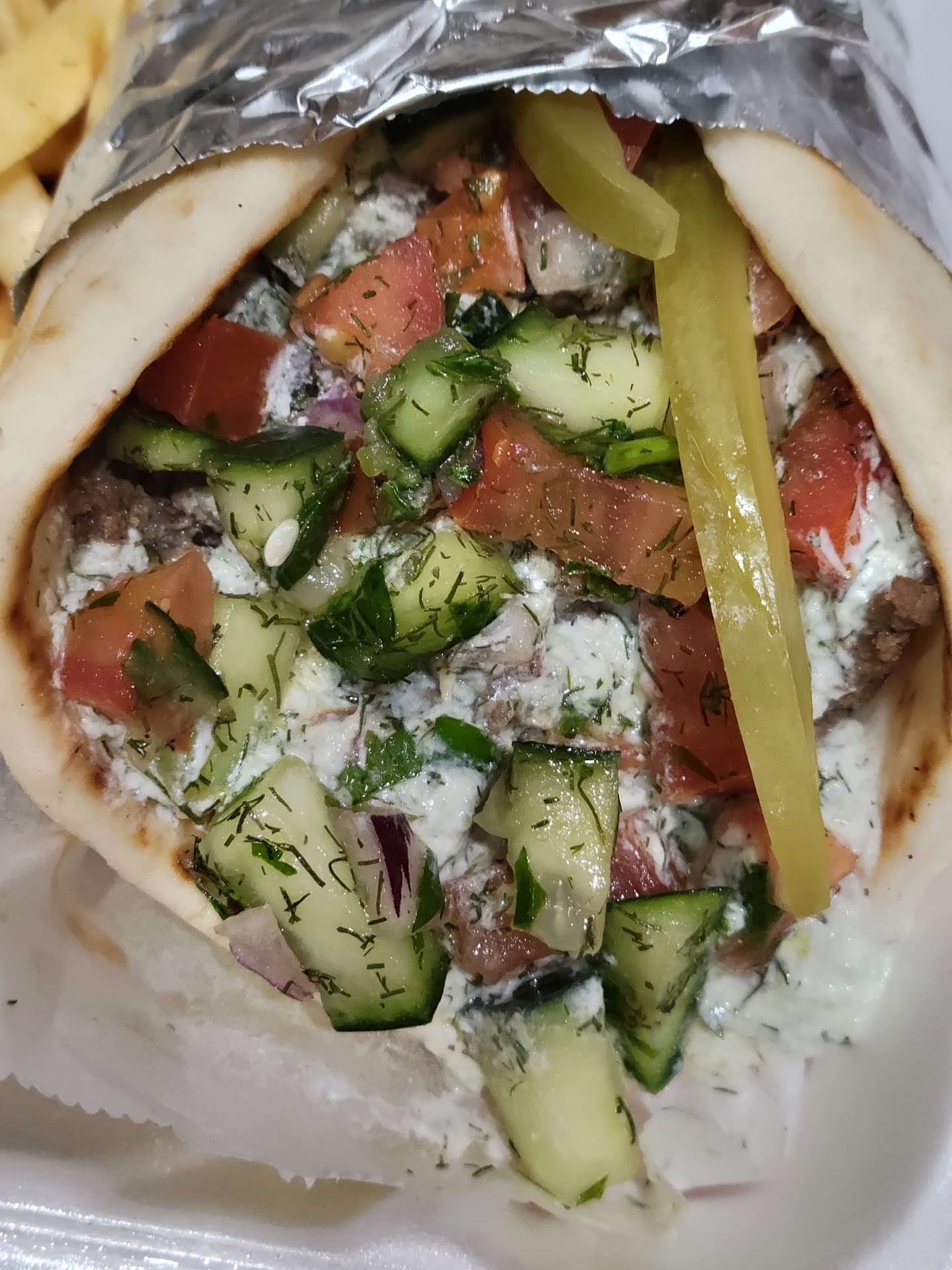 The food was cooked to order at the time of ordering which I really appreciated. The fries were fried perfectly, they were crispy and not oily and seasoned incredibly well, they were excellent. The beef shawarma was VERY tender and not chewy at all, and the gyro bread was soft, warm and thankfully not overly sweet which I really liked. The Chicken shawarma was done very well, and my wife could only eat half as they are very generous with their portions, our 15 year old gladly helped her finish the rest.