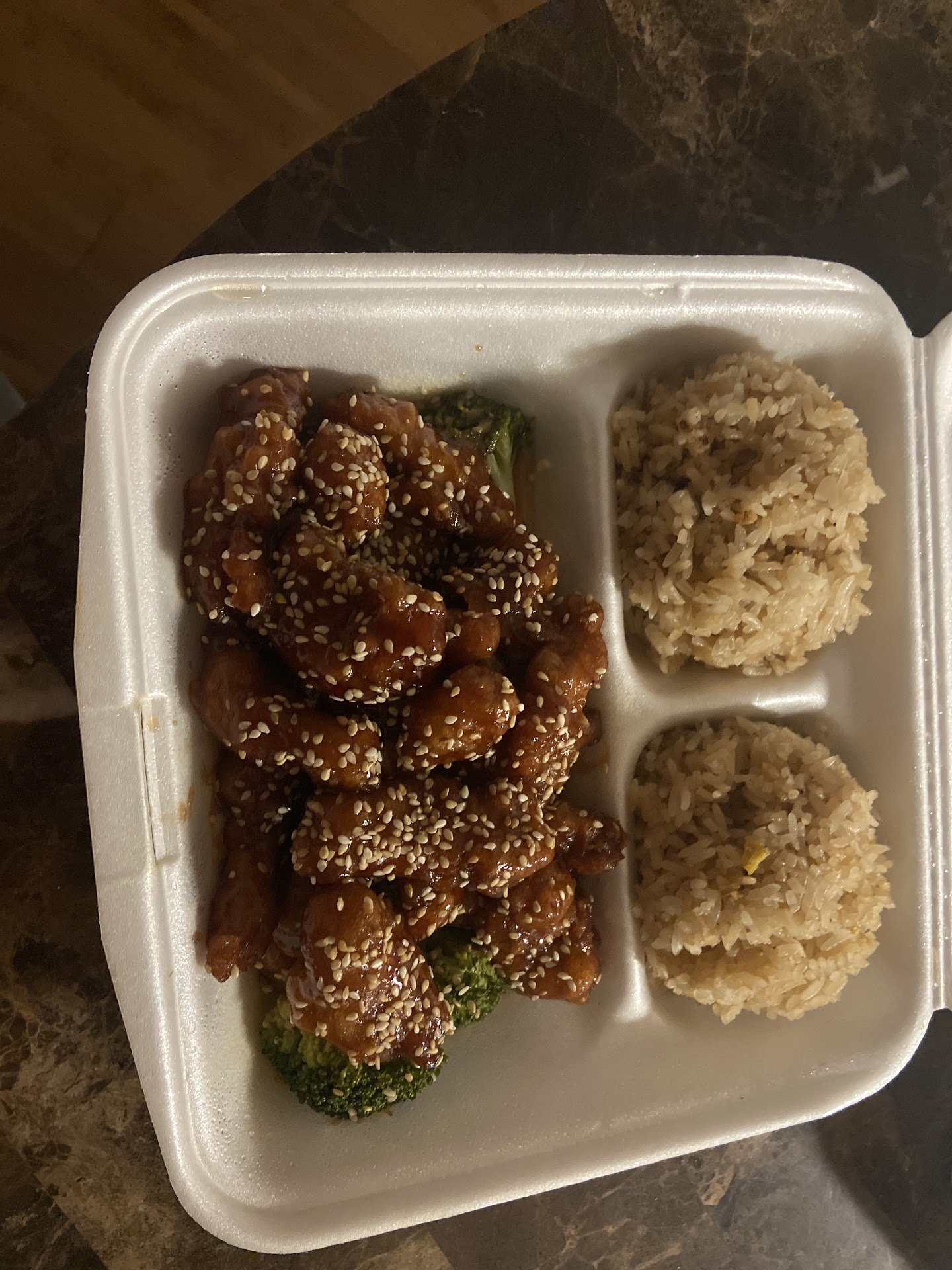 Read moreI ordered lunch via Uber Eats so I understand lack of freshness might be excused a little but I'll tell you as someone who is always looking for good Chinese food, this is not the place. The sesame chicken was battered in a thick fried almost pancake like batter that when mixed with their sauce became very soggy. The rice was undercooked and tasteless. The egg drop soup was thick and questionable on what was used for broth. The rangoons were stale and dry as well as cold. There was nothing creamy about the cream cheese. I asked for chop sticks and got none. I will admit, I am a foody person and take food experiences very serious because of the amount of money we pay these days. I paid $15 for lunch plate worth half of that. Definitely underwhelmed to say the least and I will not be going back to...