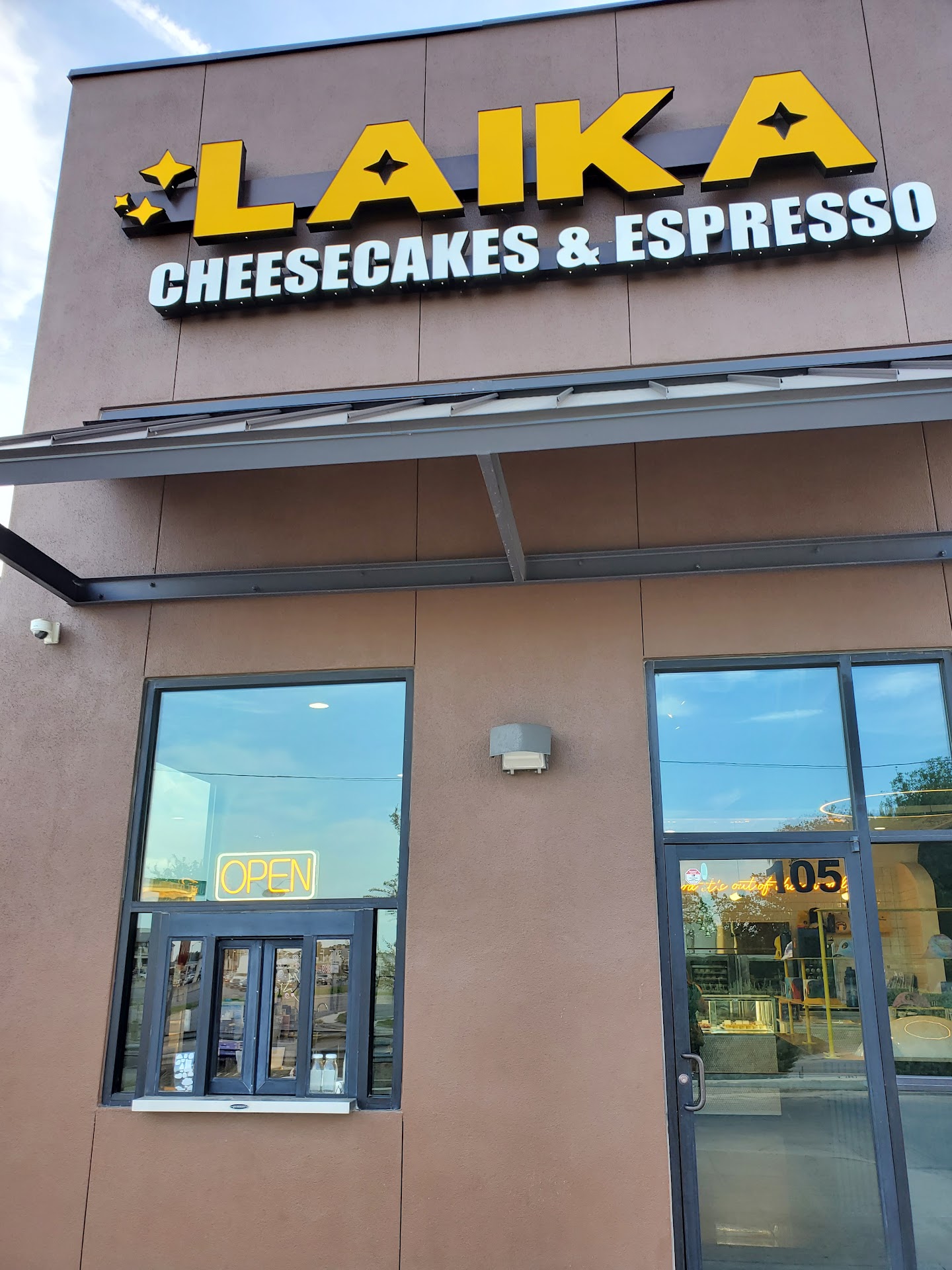 I wanted to try Laika Cheesecake & Espresso in New Braunfels well after it opened so they could get over the new location opening hype. Today my daughter and I went for a taste. Ok, weird I know but neither one of us really like cheesecake, therefore they recommended the tres leches. It was very good, creamy and very sweet and tasted like I expect tres leches to taste. We would eat it again. Prices for jars, individual servings, are $7 (bring back 10 empty jars for a free one). The slices are $9, I believe most people share this size but I bet real cheesecake lover’s eat the whole thing. The refrigerators behind the counters are fully stocked, so they probably not running out during the day now they have been open a while. They have gluten and sugar free but no vegan options. They do have a drive thru off of Unicorn street. They also have a very handicapped friendly parking lot because there is no curb once you park in front of the parking stop. I didn’t have to walk around to a ramp because every parking spot is accessible to all storefronts. Coffee, espresso and tea prices are from $2.75 to $6, very affordable. I had a cappuccino and my daughter had Earl Grey hot tea, both were very good. 2 people there are very friendly and explained everything since it was our first time, great job staff! Now to the inside, they play retro music, which we enjoyed. Very mod with an industrial twist according to my daughter. Nice and spacious, 5 small tables with hard plastic chairs and along the back wall are 5 bench’s with backs, 1 tall table with 5 cushioned bar chairs, a long bar with 4 bar chairs and 2 ball bubble chairs that swivel. They don’t have high chairs or toddler chairs, however there is plenty of room for strollers. We sat inside reading for over 30 minutes after eating as people came and went. Plugs including USBs are all around, so you can plan on hanging out for a while. There is only 1 toilet in a unisex bathroom. That’s everything. Give it a try, we are...