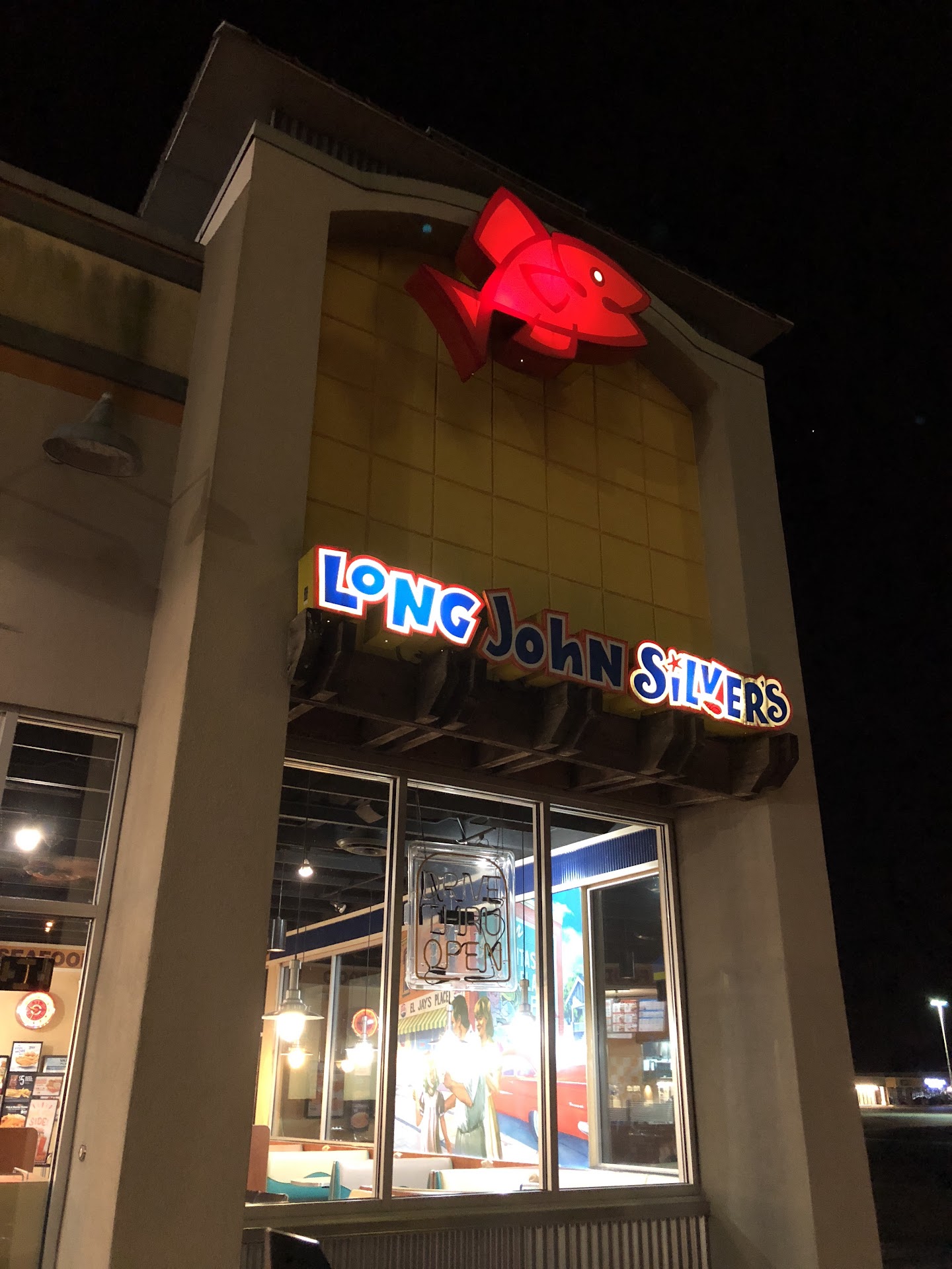 Read moreAlmost drove right past as there wasn't a single light on in the parking lot, or on the building (it was well after dark), but saw others coming and going. Was minimally impressed when a staff member held the door open for me...as he was billowing cigarette smoke on his break (same one who re-entered the store and went right to work on the line w/o washing his hands). When you walk into a place and get met at the counter by the staff, telling you they're "Working with a new "chef", your wait will probably be pretty long."...that right there should have sent me back out the door. But, at least they made good on their promise...21 minutes elapsed from the time of order until the time I walked out the door with my to-go bag. Should have checked my order before leaving, but didn't. Got home to find the fish missing from my fish/chicken platter. And the new "chef" (a k.a. deep fryer operator...what the hell is there to "chef" in a fast food joint??) must not have been very practiced at his hush puppy prep, as one side of mine were fried to a inedible crisp, and the other side barely more than the golden yellow they start life as... disgusting! Fries were cold and my chicken planks a bit tough/dry. This was made even more disappointing by the fact that I LOVE Long John Silver's deep fried heart attack food. Then, when I get a chance to sneak some of it while my wife's out of town, I end up getting a bag of crap...oh so...
