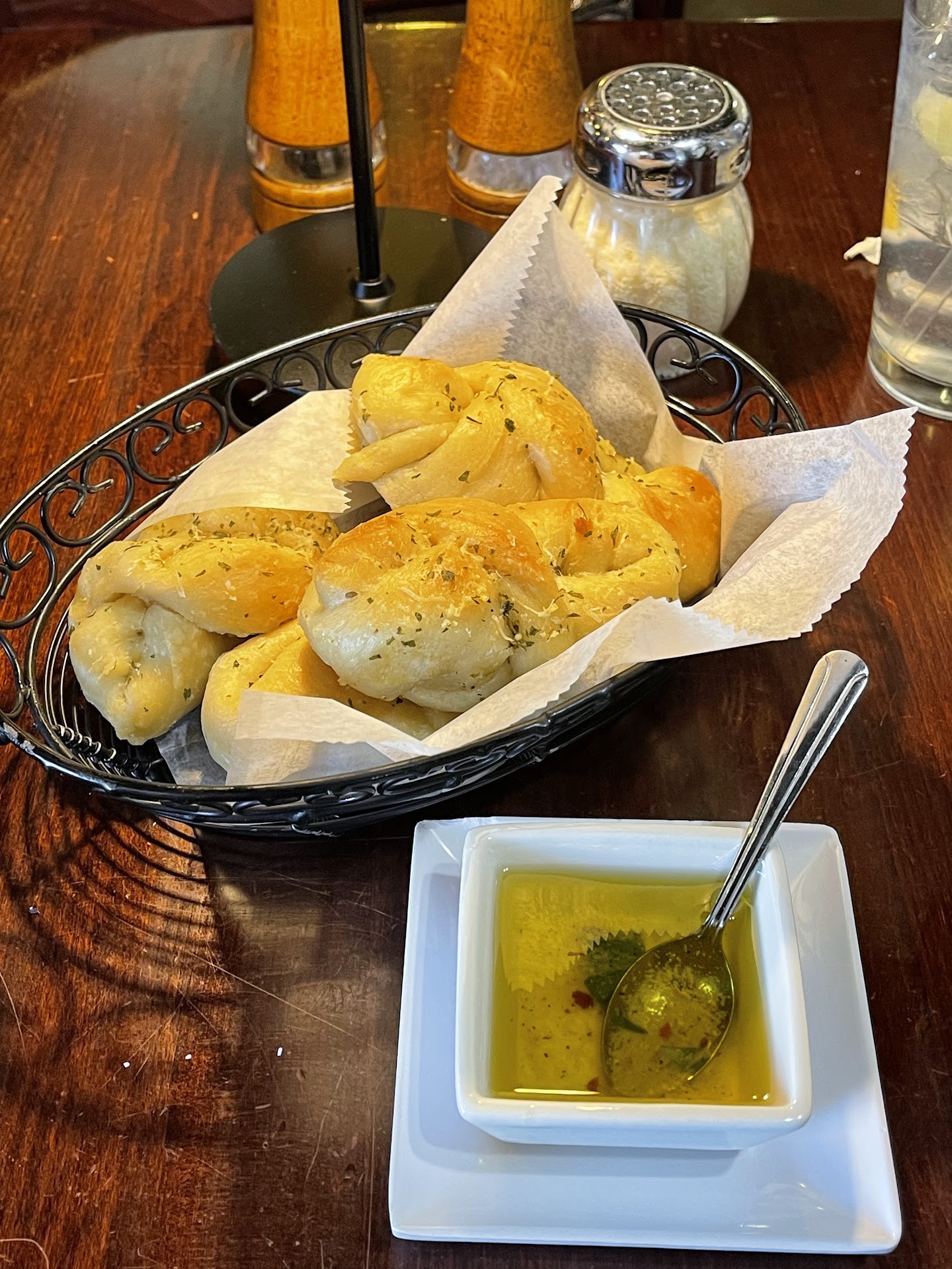 My family is of Italian origin, so we know authentic Italian. Coming in, we were seated quickly, and the server was so nice and friendly. We got complimentary garlic knots, which made me moan at the taste. It reminded me of my grandmother, when she made them. The smell would make me run straight to the kitchen and try and sneak one before they were put on the table. They were so good, especially with the garlic oil on the side.
