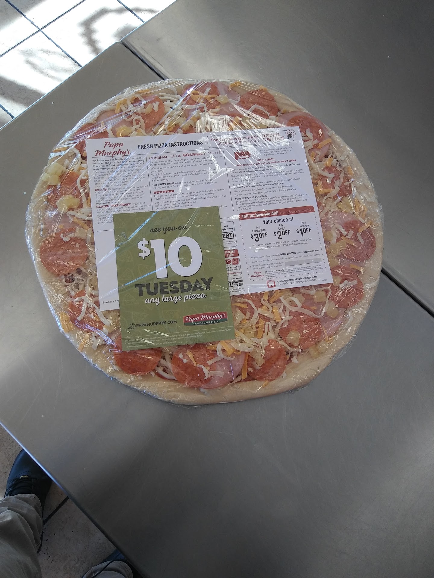 Read moreI have a free one coming to me! I'm thinking about going up there tomorrow and get my free one. I love Papa Murphy's! From the first time I ever tried it. I've been working to get this free one for 3 years because I can't eat a whole lot of pizza but boy Papa Murphy's this is the best and it's worth every bite.! Now I have to drive farther to get to Papa Murphy's but it's well worth the drive. If you ever get a chance to try the double-layered one! Give it a try it is so good! I go to the one in New Braunfels because it's closest to me. The store is always clean employees are always very nice. So go check it out and see how much you'll enjoy it. God...