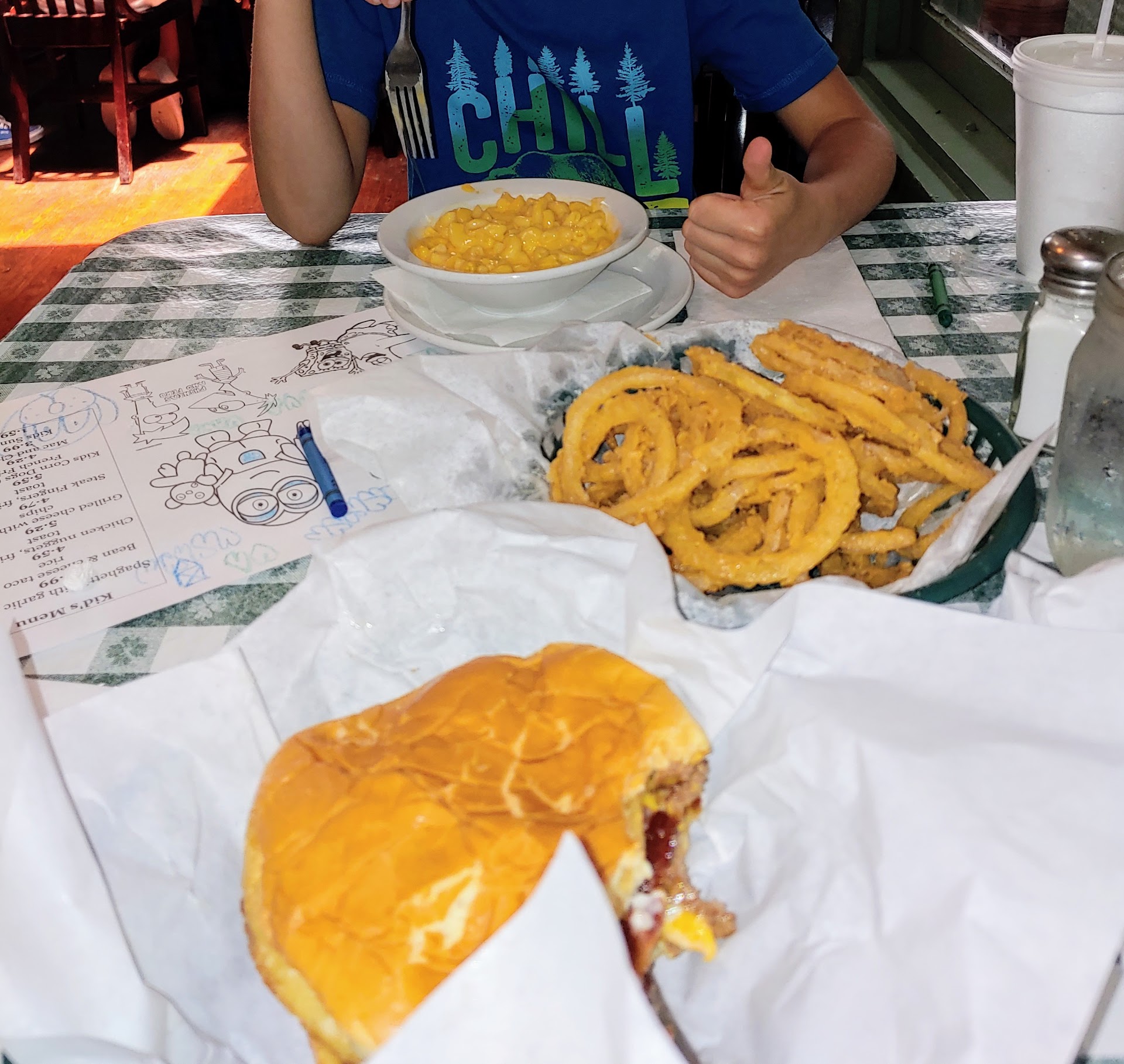Pats is an New Braunfels Staple. We generally avoid during the summer months but we were celebrating the end of school. They happened to be short staffed today but all staff was stepping Up and doing anything needed to keep everything on par! The food was delicious as always. My son said the Mac n cheese is his favorite. The onion rings were lightly battered and not greasy at all. The hamburger...