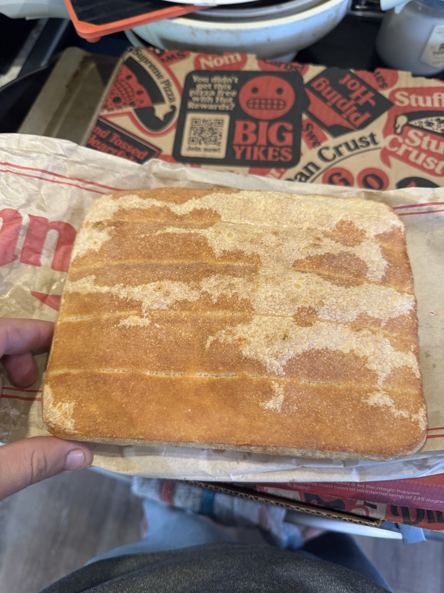 The pizza was so dry with minimal topping, Sa’s ice and cheese that there was barely a difference in the breadsticks vs the pizza. There was maybe a teaspoon of sauce spread across the whole pizza, maybe a palm full of cheese for the whole pizza and a whopping 5 pepperonis on this whole pizza.