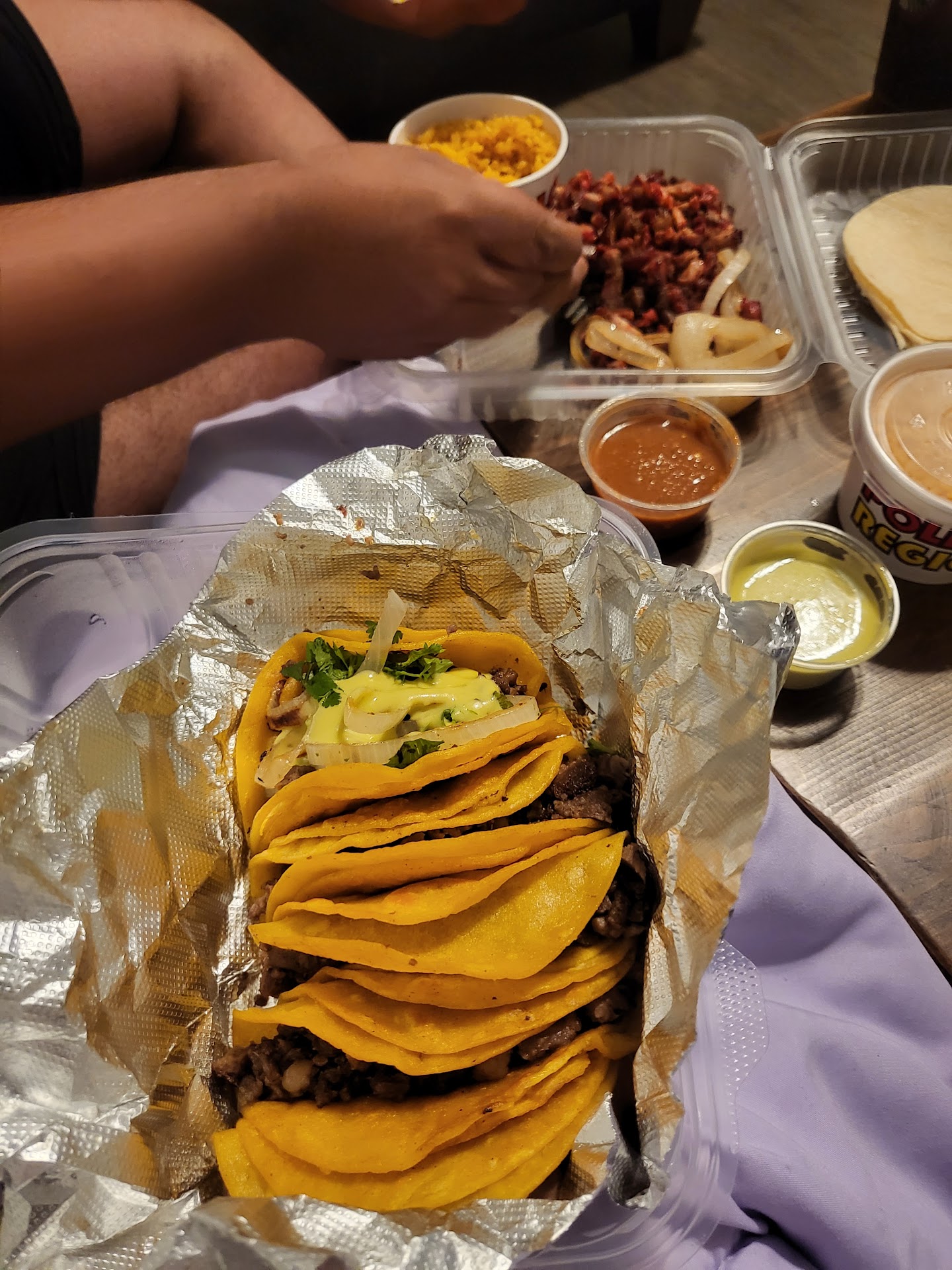 The chicken flautas were good. They gave you plenty of flautas. Most places would usually put 2 or 3 on the plate. This place gave you 5. They were not greasy, or tasted like the oil should have been thrown out. I did appreciate them putting them into a separate container and keeping the rice and beans separate. The quesadilla was also good. They had prepackaged all of the condiments separately, which was nice. I was a little disappointed that you could not just get a 2 piece chicken. You had to get a 1/2 or whole chicken. My kid ended up saying he was going to take it for lunch the next day. I am not sure what was going on with the rice. It had an almost "burned" taste to it and had a "funky" aftertaste. I ended up throwing all of the containers of rice away in the trash. They did give us charro beans. They were ok. It would have nice to have a 3rd option of black beans instead of only charro or refried beans. When I ordered the food, the new guy never asked us what kinds of beans we wanted.