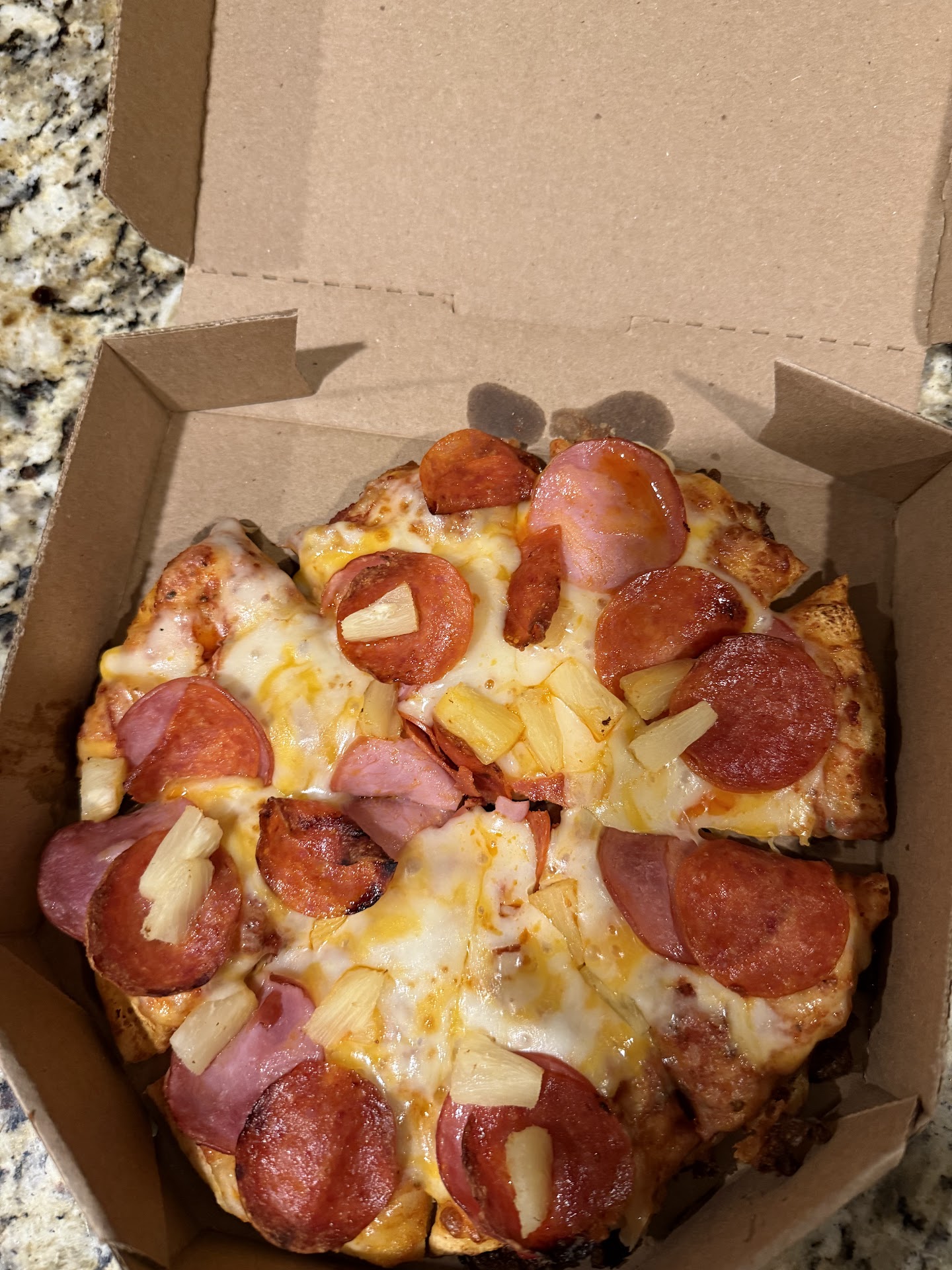 Lastly, was the actual food. We got our food to go & live 5 mins away. The toppings were extremely good but the dough was under cooked. Maybe 3-5 mins more and it would’ve came out perfect but it did taste like ours were undercooked.