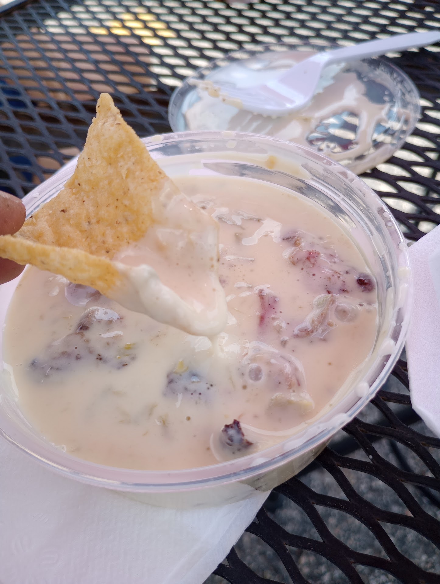 I've been wanting to try this place for a while and I wasn't disappointed! The owner was really friendly. He gave me a sample of the smoked chicken salad. I really liked the smoked flavor, but I am not a fan of nuts in my chicken salad. Great option you don't see at BBQ joints though. We tried the chips and hatch green chili queso with brisket which was delicious! We also tried the brisket taco, which was HUGE! Really loved that he makes the tortillas fresh right then. I wanted mine plain (sauce and veggies on the side) so I could see how the brisket tasted solo and I am glad I did. The brisket was very tender with a nice bark. Definitely big enough to share, IMO. The only downside was that the BBQ sauce wasn't homemade. I understand the argument that great BBQ doesn't need sauce but store bought sauce can RUIN great BBQ! I am glad I didn't get sauce on my taco or I would have been disappointed. The store bought flavors would have canceled out the awesome flavor or the meat. So I hope the owner considers concocting a homemade BBQ sauce in the future. We will definitely be...
