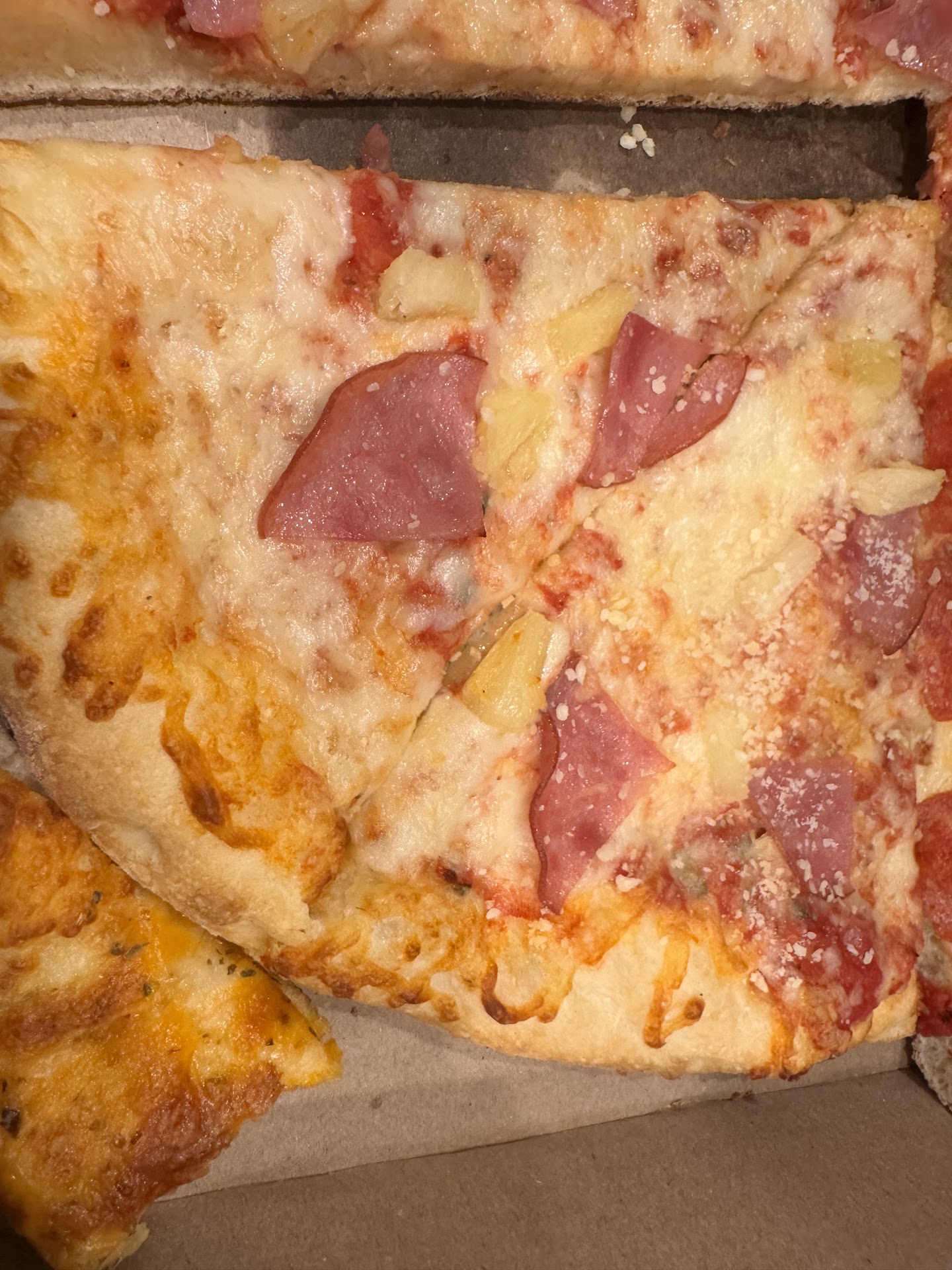 The pizza was a shot at the basics, 16 inch pizza extra pepperoni, extra mushrooms, and extra cheese. The slices were on a tanned crust with a soft middle. Sauce was sweet and put mositure in the pizza, but did not make a wet pie. I was challenging them to make me a heavy slice, and while there were extra toppings, the pizza dodged that “break the oven” thickness I was seeing if they could produce. They wisely kept the pizza within range of being able to cook without much fuss and 20 mins later I had a steaming pizza.
