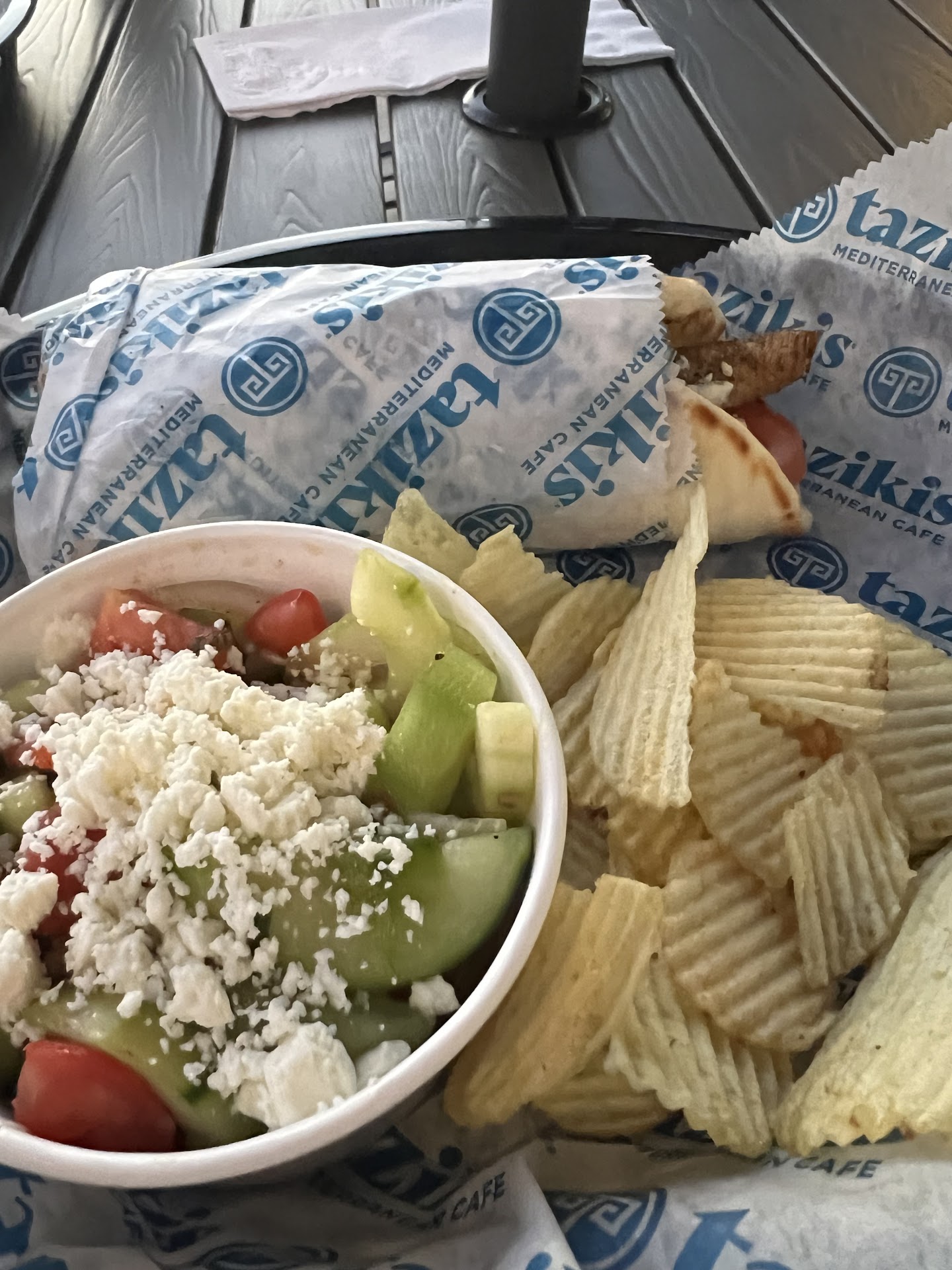 I get it — somebody probably said, “Hey, let’s toss in some chips.” Okay. Keep your potato chips if you really want to. Just make them a side choice, not the default. When I open my tray and see chips scattered next to a gyro, it feels more like a sandwich shop than a real Greek café.