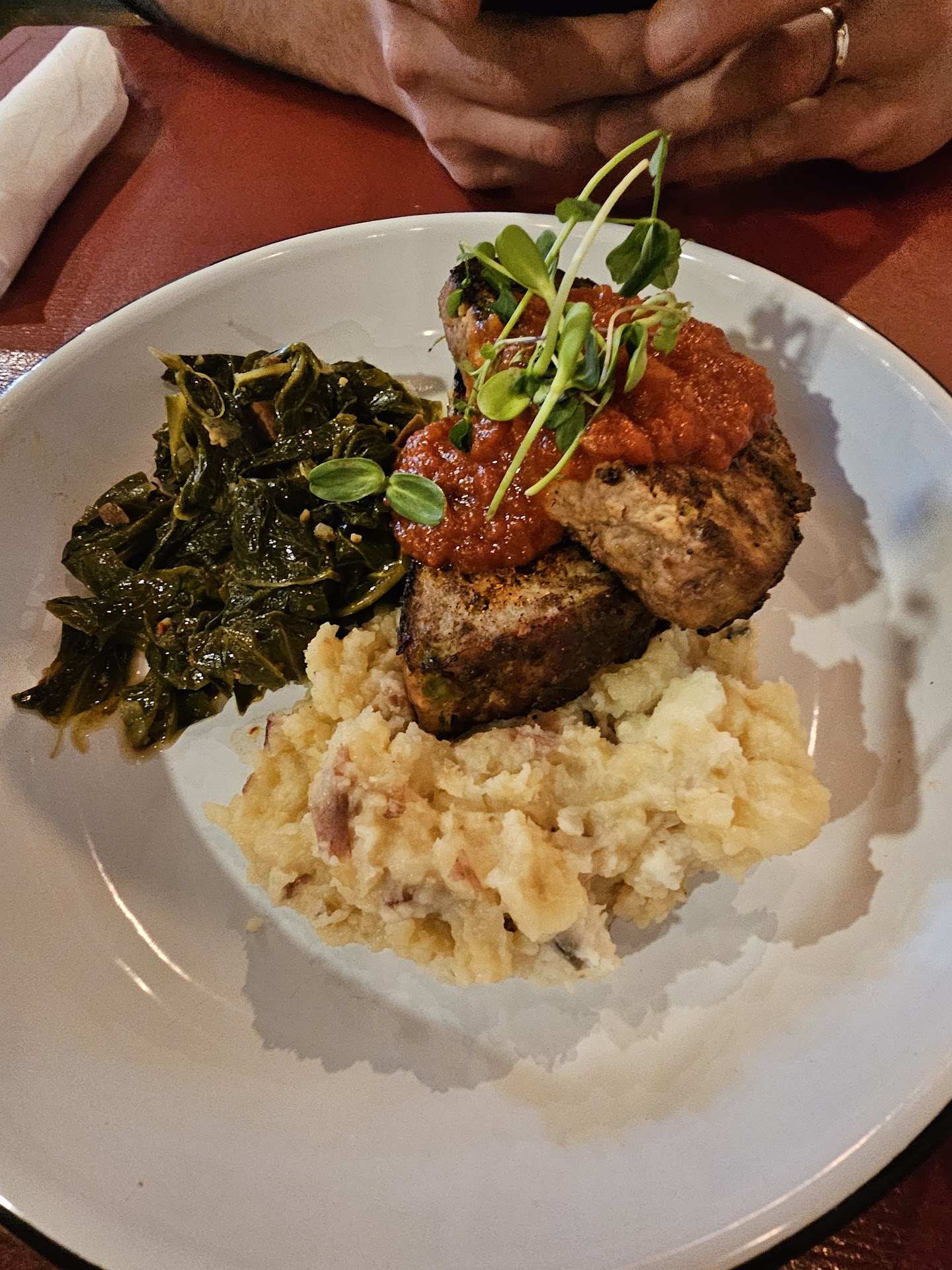 Here are my complaints: The online description describes a sit down restaurant but they seemed surprised we wanted to sit and put us in a concrete room about 20 yards from the main restaurant. It was an incredibly loud room and is in desperate need of sound dampening. (If the owners read this, I am an audio professional and recommend some baffles for the ceiling area, maybe some outdoor rugs, and hanging anything on the wall that can help with the echo) Our server was nice but because we were in a separate building, our orders were taken, and payment was taken, but the server disappeared in between never checking in and giving us no chance to ask for salt (none on table, and the food was in need of it), extra napkins or any restaurant staple like that. We were actually worried we were forgotten while waiting to pay after finishing our food. And a small gripe, they gave us our coffees in eco friendly disposable cups. I admire the effort, but the lids didn't fit so they were hard to drink out of and the card board softens with liquid. I don't understand why they couldn't have the actual eco friendly option of reusable mugs for a sit down breakfast place, but again, their surprise at us wanting to sit down could explain this. If they are more of a coffee shop than a diner, this should be better explained in the online listing for the restaurant and they should ditch the full brunch menu.